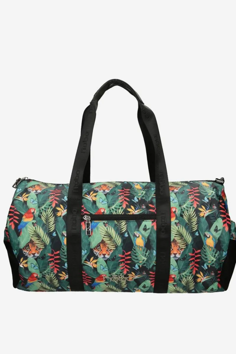 Torba została wykonana jest z tkaniny odpornej na zabrudzenia w przepiękny print. Posiada odpinany, regulowany pasek. Torba ma jedną komorę zamykaną na suwak, natomiast wewnątrz znajdują się dwie kieszenie również zapinane na suwak i paseczek z karabińczykiem umożliwiający zapięcie kluczy. Torba posiada praktyczne uchwyty. Na zewnątrz znajdują się dwie kieszenie zamykane na sznureczek ze ściągaczem oraz dwie kieszenie zamykane na suwak.