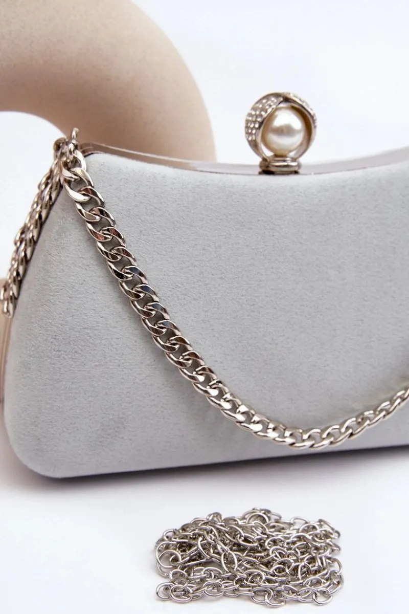 Mała torebka wizytowa wykonana z eko zamszu. Idealna do wieczorowych i koktajlowych stylizacji! Zapinana na ozdobny zatrzask. Możesz ją nosić w dłoni, a także na ramieniu.