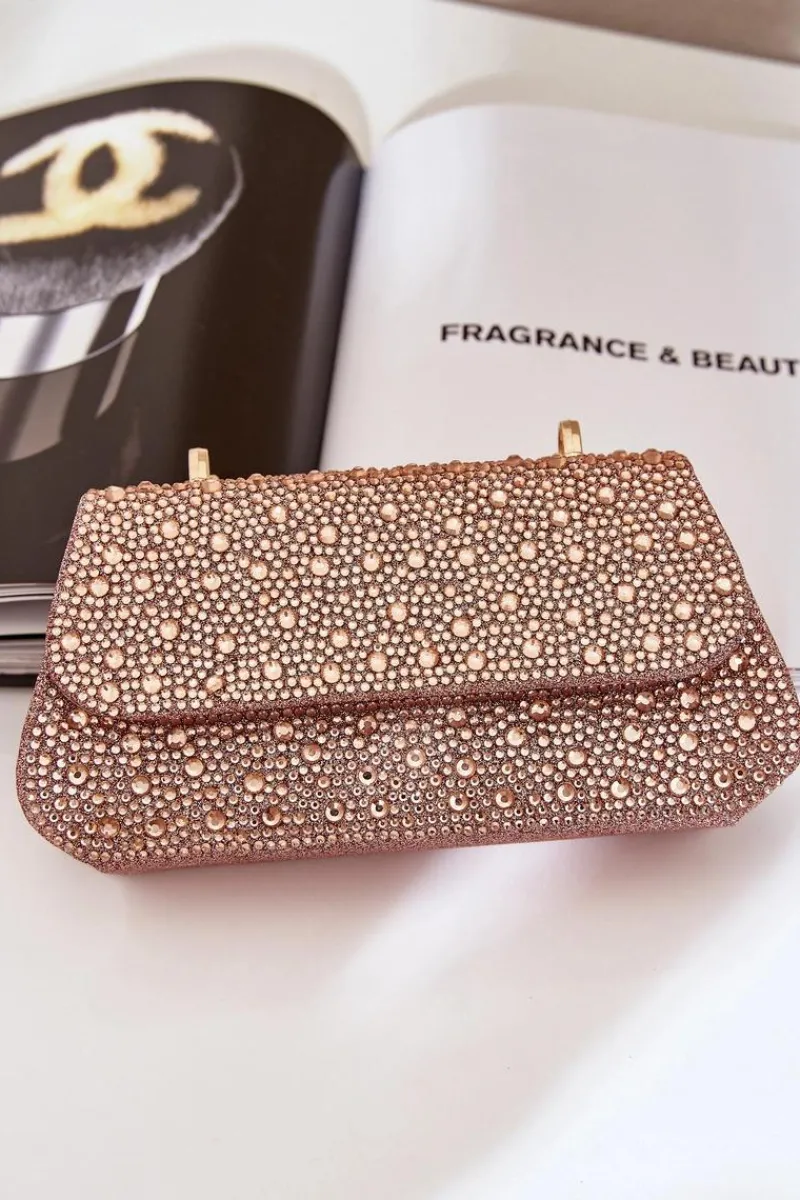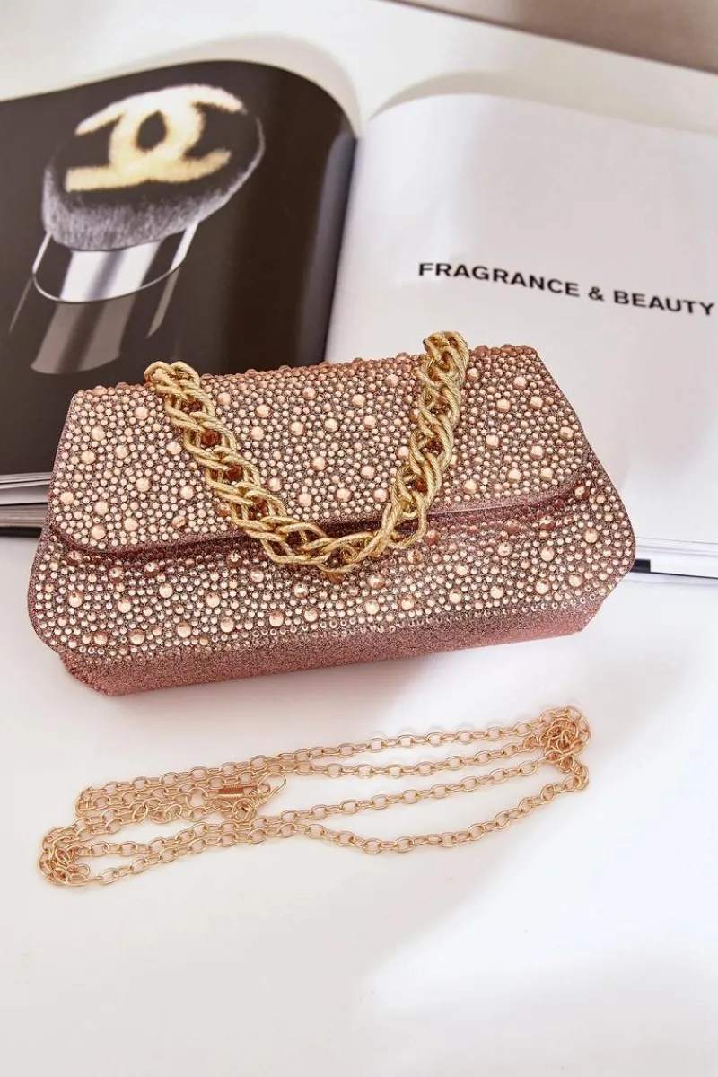 Stylowa, zdobiona torebka wizytowa, która idealnie uzupełni wieczorowe stylizacje. Zapinana na klips magnetyczny, gwarantuje łatwy dostęp do zawartości. Wewnątrz znajduje się praktyczna mała kieszonka, idealna na drobiazgi. Posiada odpinany pasek w formie łańcuszka, dzięki czemu można nosić ją na ramieniu lub jako kopertówkę. Elegancki i praktyczny dodatek na wyjątkowe okazje.