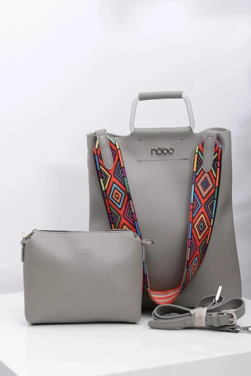 Torebki Nobo>Nobo Damska Duża Szara Torba Worek z Mini Torebką