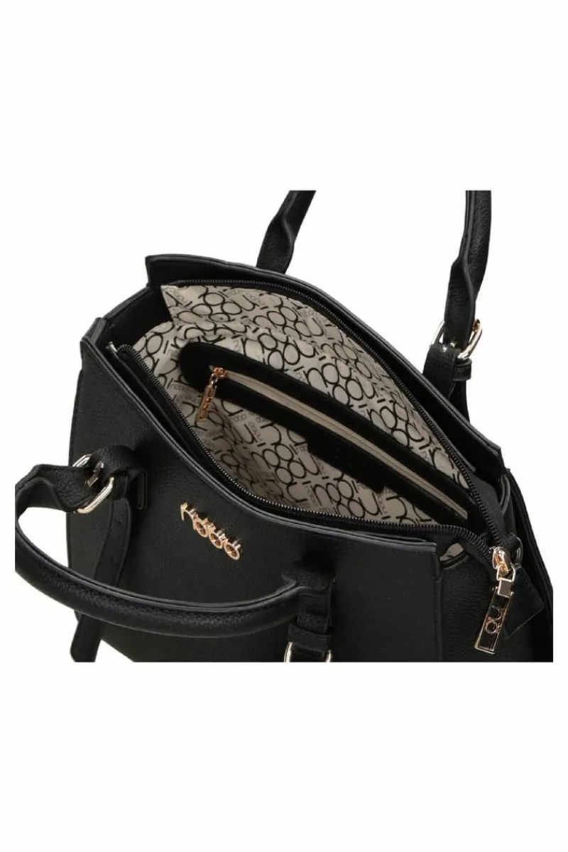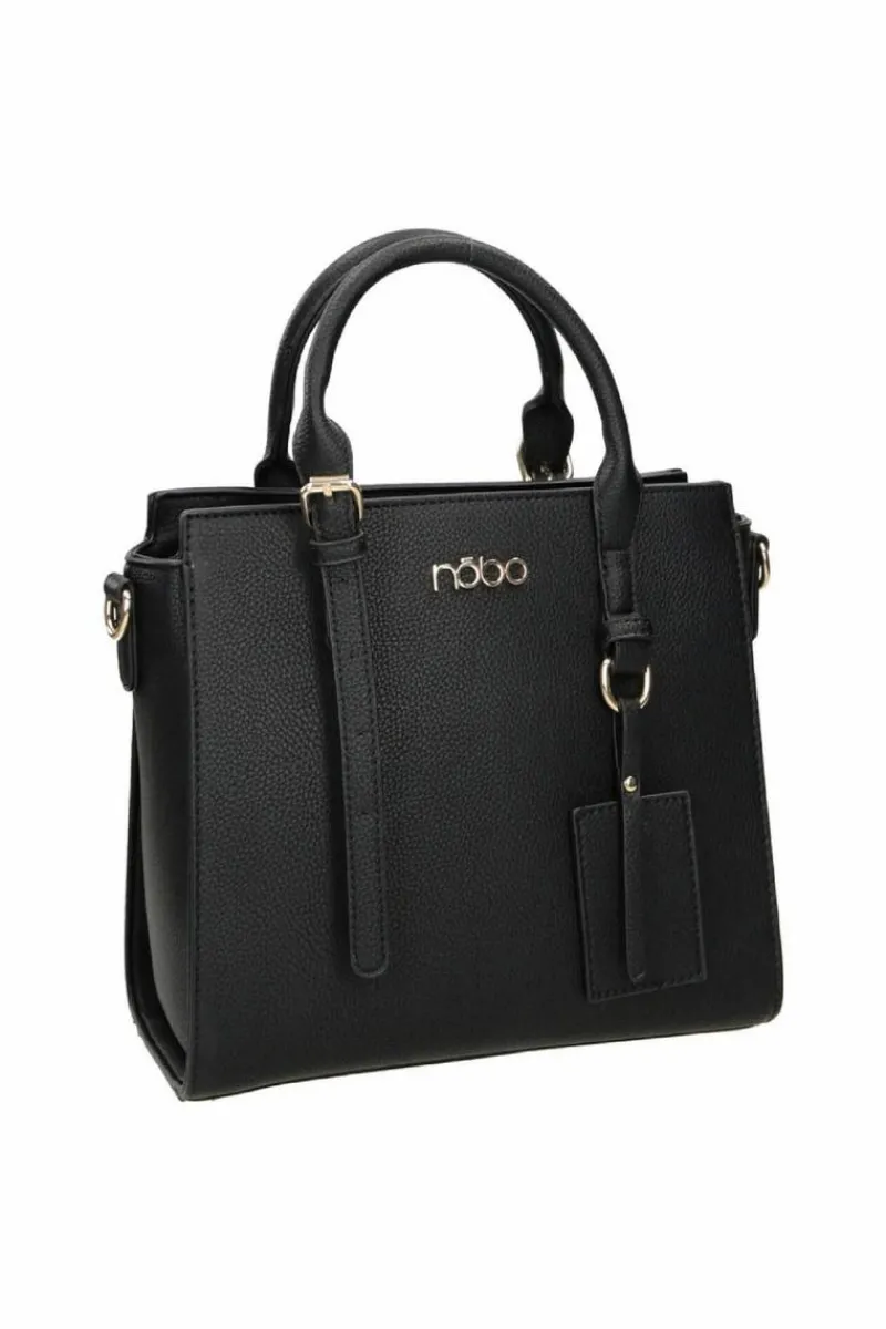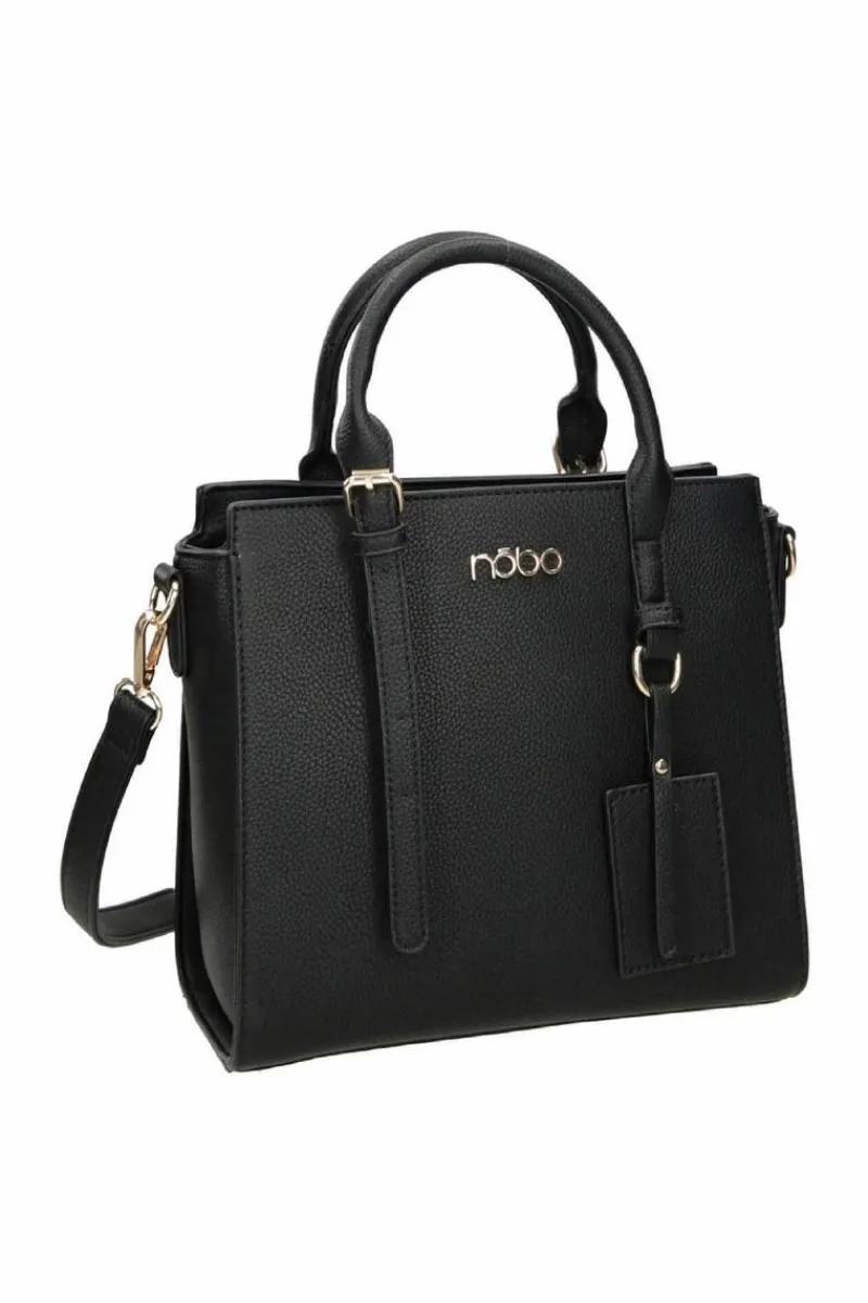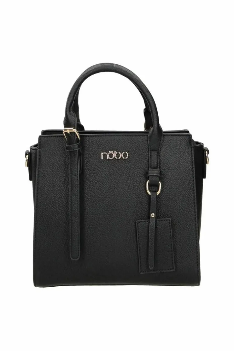 Stylowa torebka Nobo zamykana na zamek błyskawiczny. Wykonana z najwyższej jakośći skóry ekologicznej. Wyjątkowa ozdoba na przodzie w postaci zawieszki dodaje szyku i elegancji. Torebka posiada regulowane rączki oraz odpinany, regulowany pasek na ramieniu. Środek torebki posiada podszewkę w logo firmy Nobo. Znajduje się tam kieszonka na zamek oraz dwie mniejsze, otwarte kieszonki. Torebka pomieści np.: mniejsze akcesoria, portfel oraz telefon.