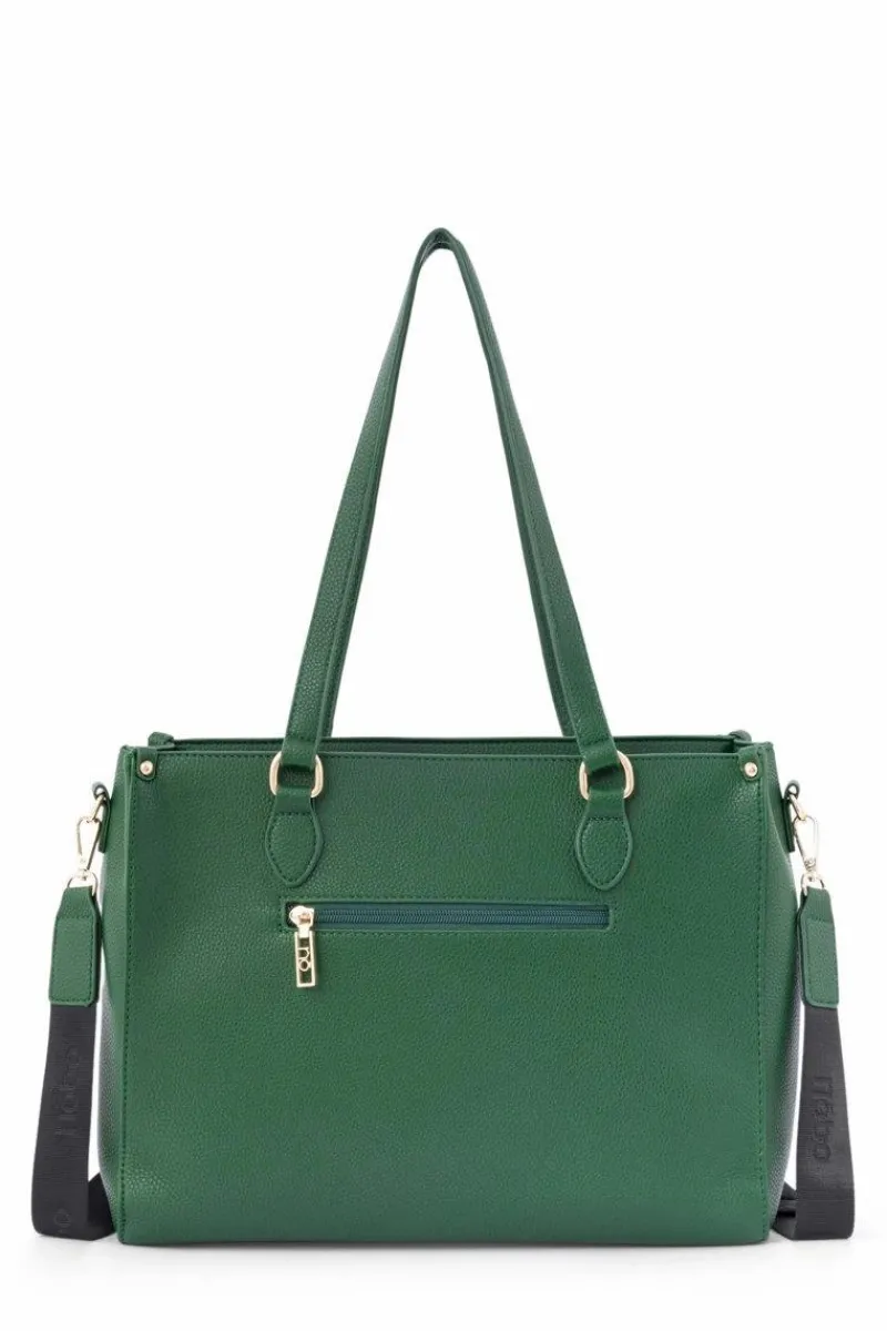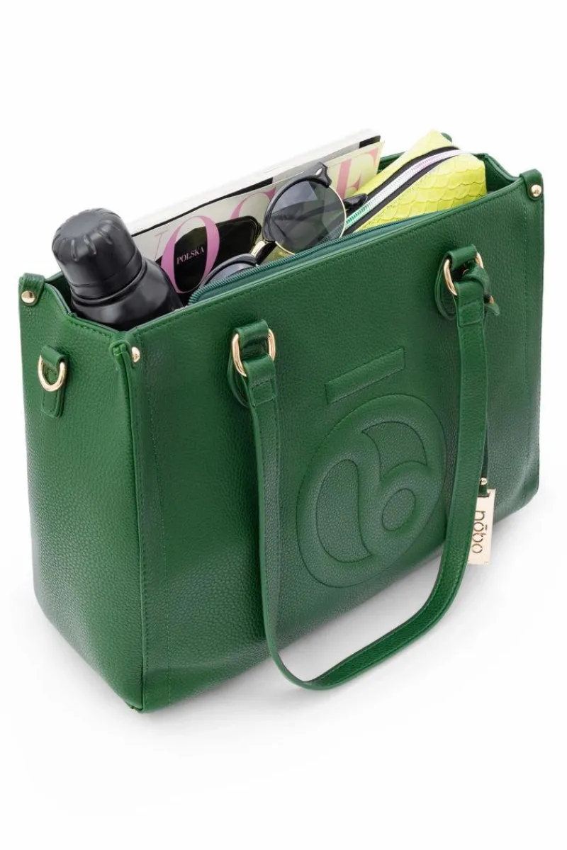 Miejska torebka damska została wykonana ze skóry ekologicznej. Klasyczny fason posiada z przodu tłoczone, przeszyte logo. Model ten mieści format A4. Torebka posiada jedną komorę zamykaną na suwak. Ponadto wnętrze tego modelu zawiera trzy kieszenie: dwie otwarte oraz jedną zapinaną na zamek. Dodatkowo do torebki został dołączony odpinany, regulowany pasek. Shopperkę można nosić na ramieniu.