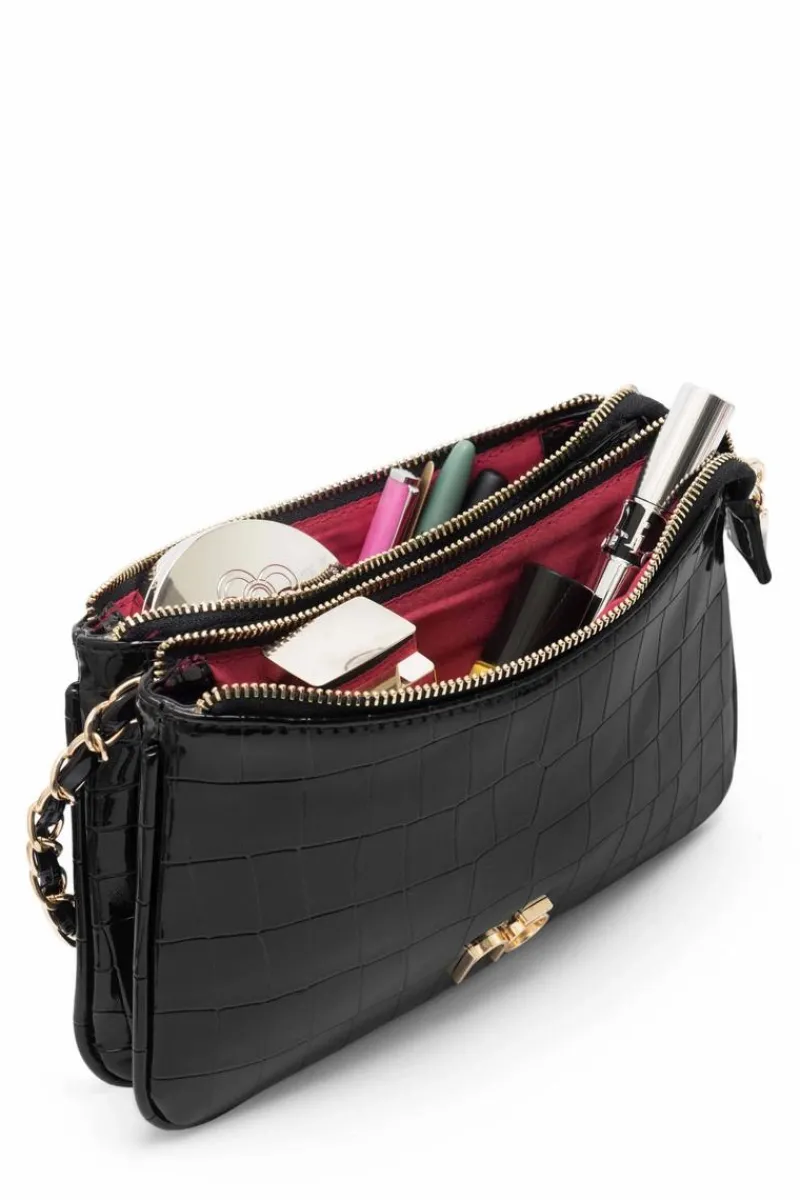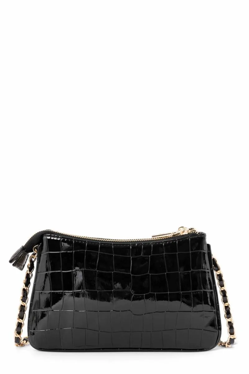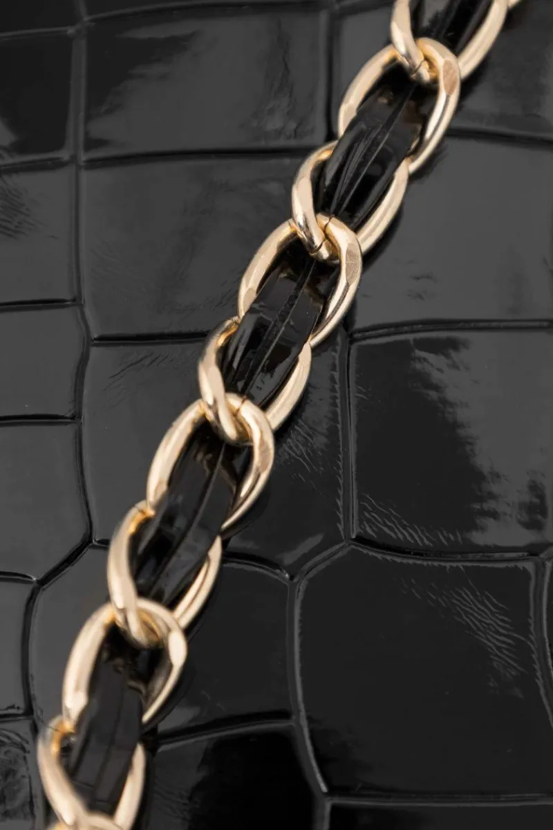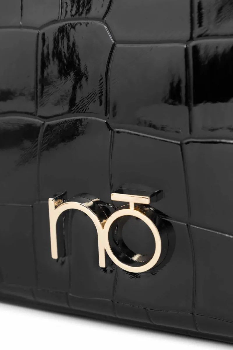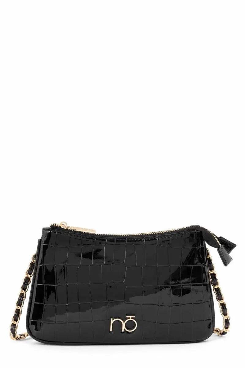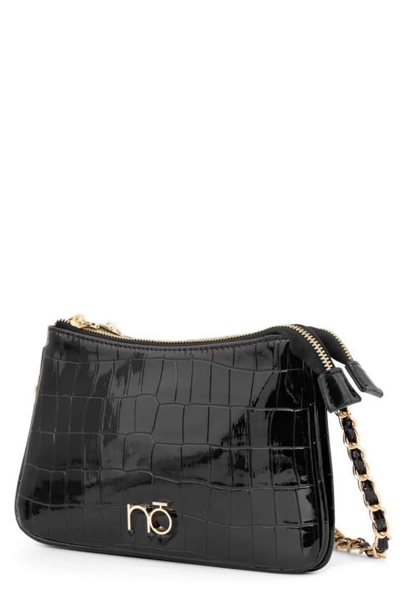 Damska torebka marki NOBO została wykonana z wysokiej jakości materiału. Na przodzie znajduje się logo marki NOBO. Torebka posiada dwie komory, które są zamykane na zamek błyskawiczny. W środku jednej komory znajduje się kieszonka zamykana na suwak , natomiast w drugiej znajduje się otwarta kieszonka. Torebka posiada ozdobny, nieodpinany łańcuch. Pomiędzy komorami znajduje się ukryta kieszonka zapinana na zatrzask.