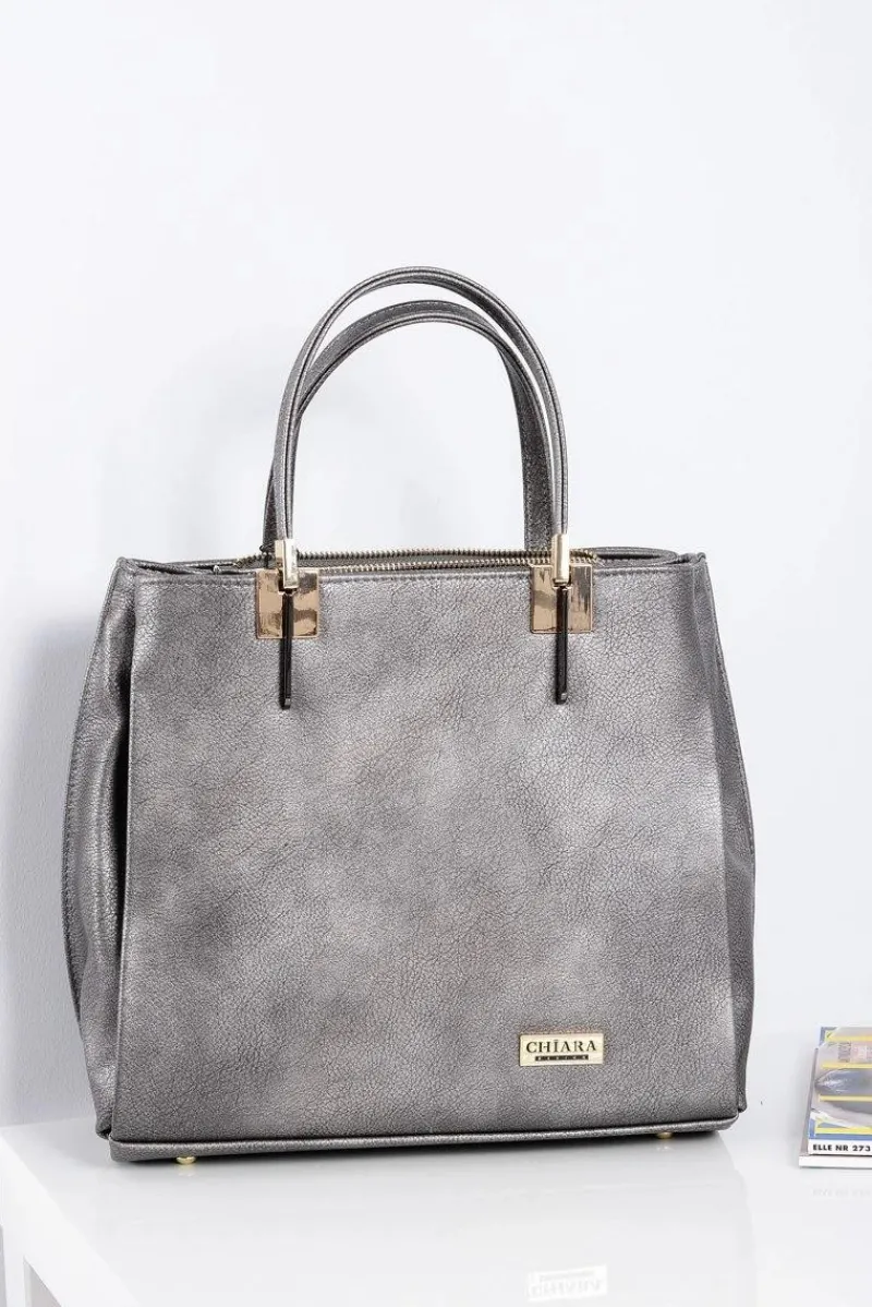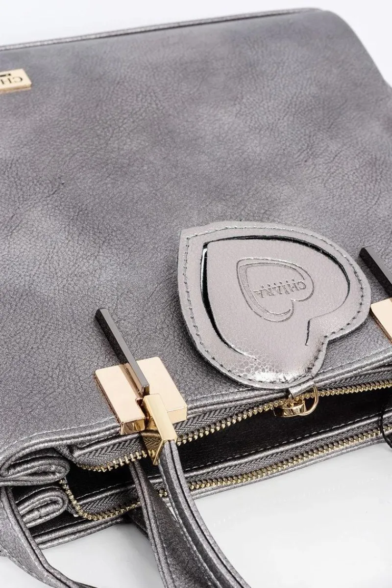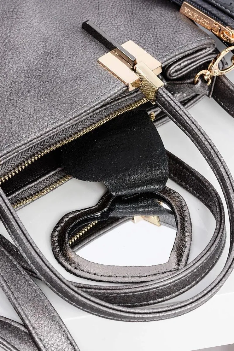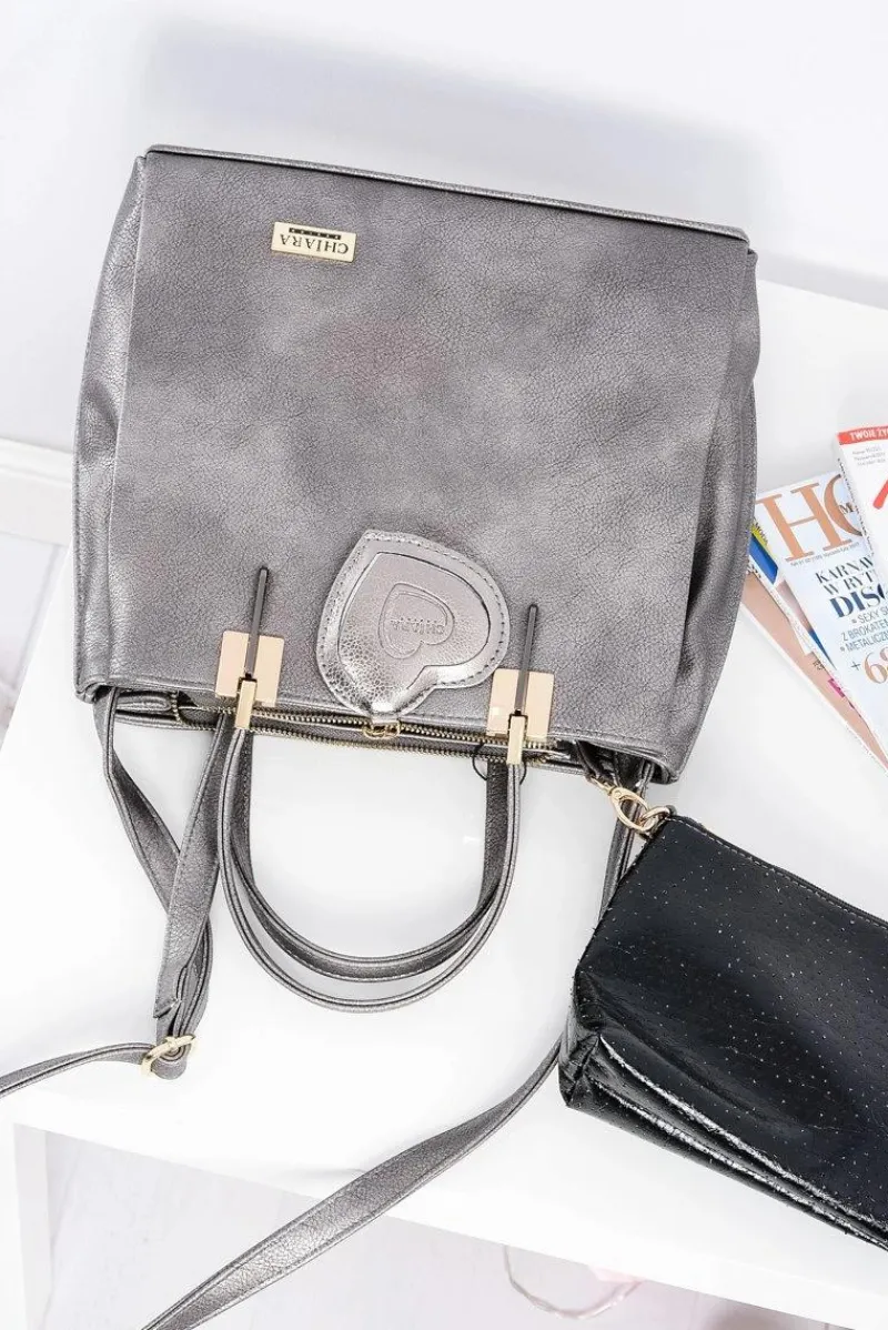 Torebki Nobo|Torebki Kuferki>Boto Duża Srebrna Torebka Damska + Saszetka + Lustereczko POLSKA