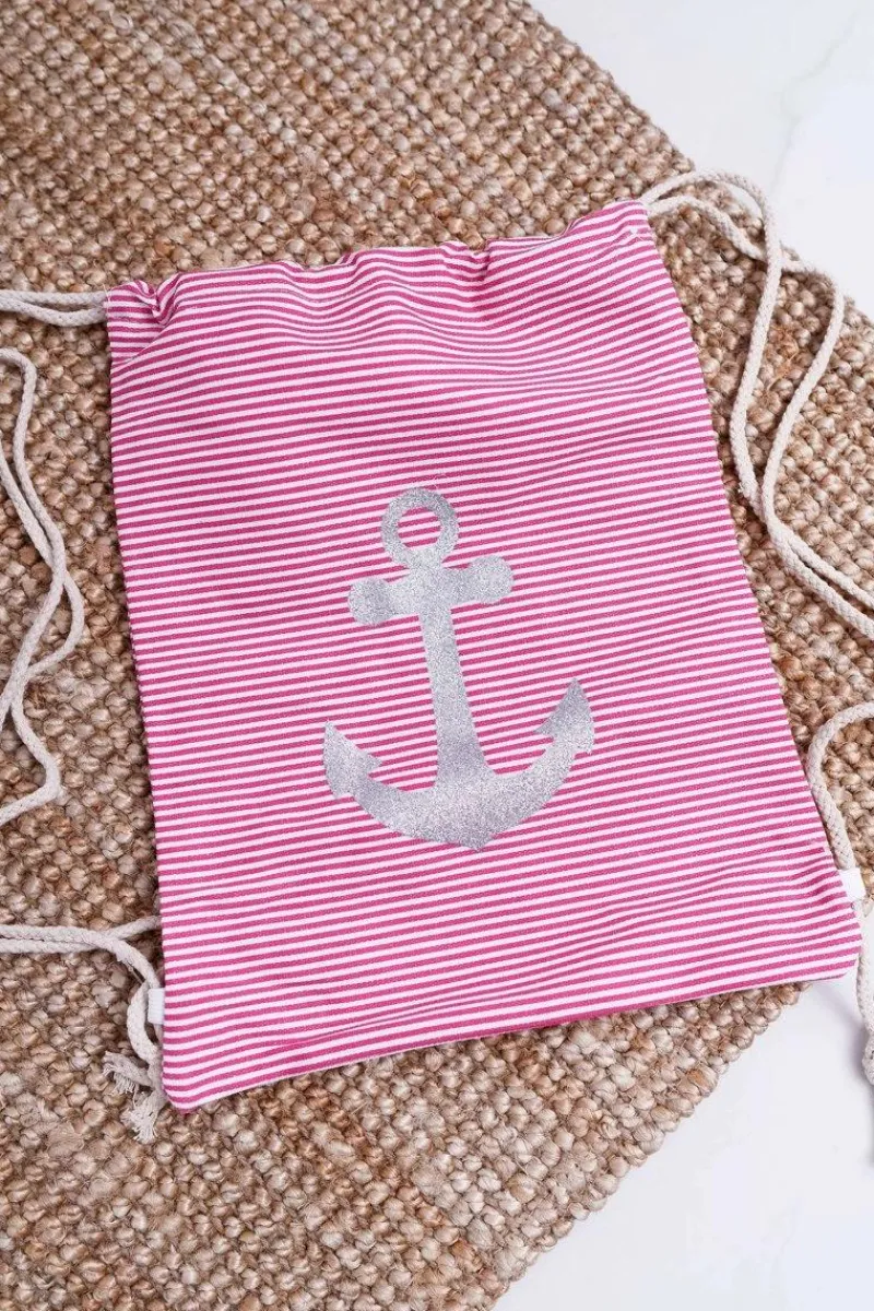 Worek plażowy świetnie pasujący do letniego sezonu. Zmieścisz w nim wszystkie swoje potrzebne rzeczy i zaskoczysz swoimi stylizacjami! Regulowane ramiączka ze sznurka. Brokatowa ozdoba w postaci kotwicy.