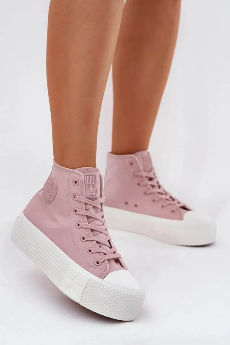 Trampki damskie marki Big Star to połączenie wygody i modnego wyglądu. Wykonane z materiału tekstylnego, osadzone na masywnej platformie, zapewniają stabilność oraz komfort przez cały dzień. Zaokrąglone noski. Cholewka sięgająca za kostkę z logo marki przyciąga wzrok, nadając nowoczesnego charakteru. Stylowy fason sprawia, że te trampki będą doskonałym wyborem do codziennych, casualowych stylizacji. Przy wyborze rozmiaru prosimy sugerować się tabelą rozmiarów.