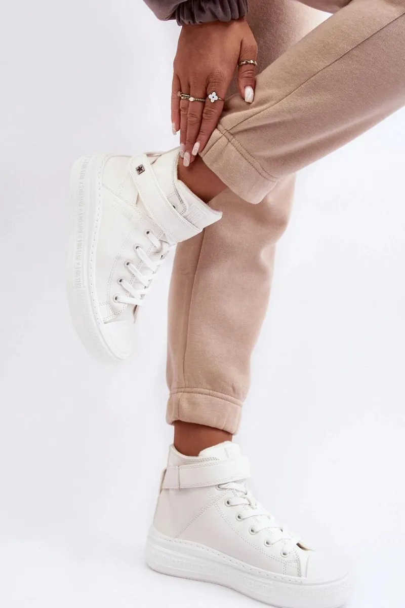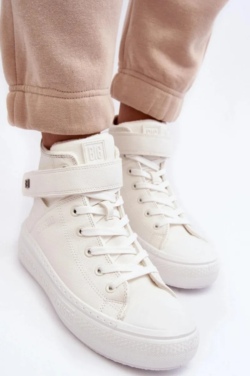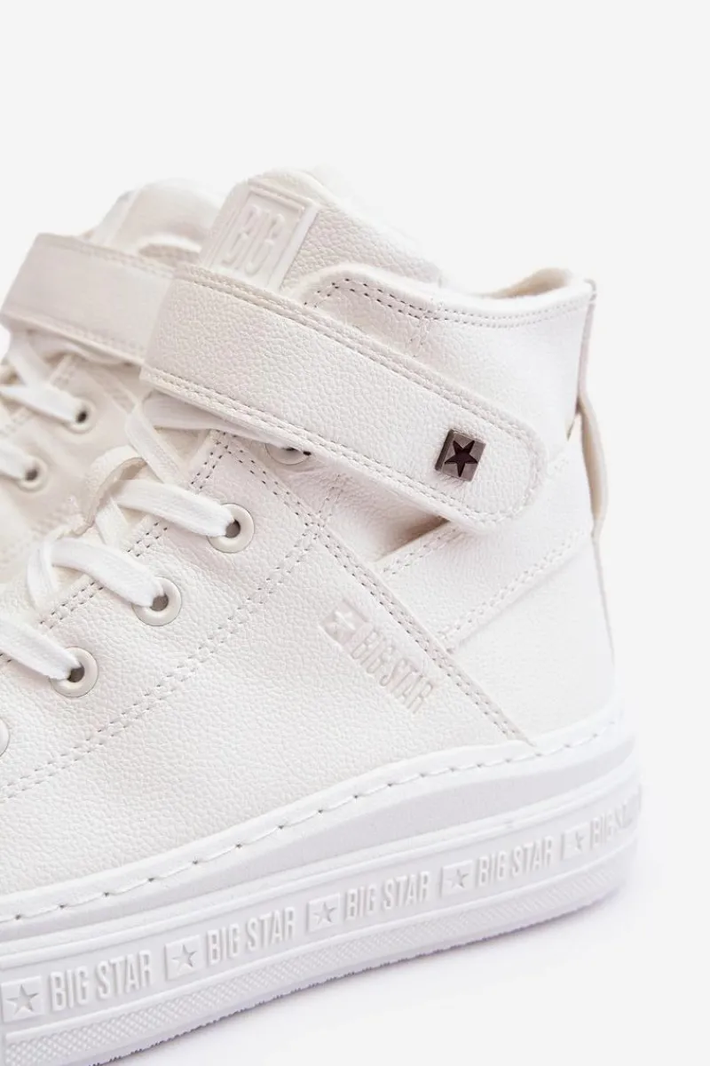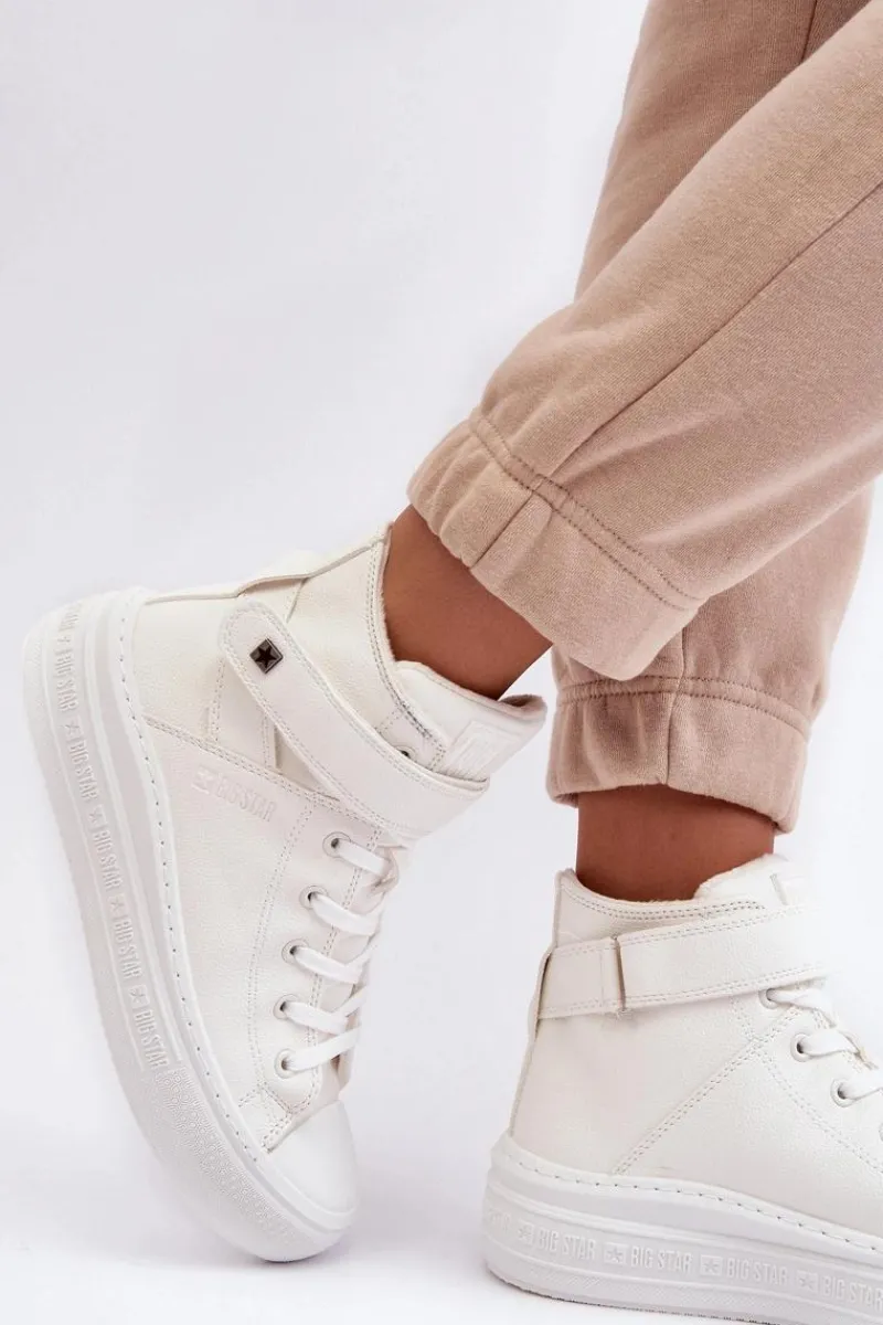 Damskie trampki od marki BIG STAR wykonane z eko skóry. Osadzone na platformie z gumowego tworzywa. Cholewka za kostkę. Model sznurowany z dodatkowym zapięciem na rzep. Noski zaokrąglone, usztywniony zapiętek. Środek ocieplony kocem obuwniczym. Koniecznie sprawdź całą naszą kolekcję butów marki BIG STAR. Przy wyborze rozmiaru prosimy sugerować się tabelą rozmiarów.