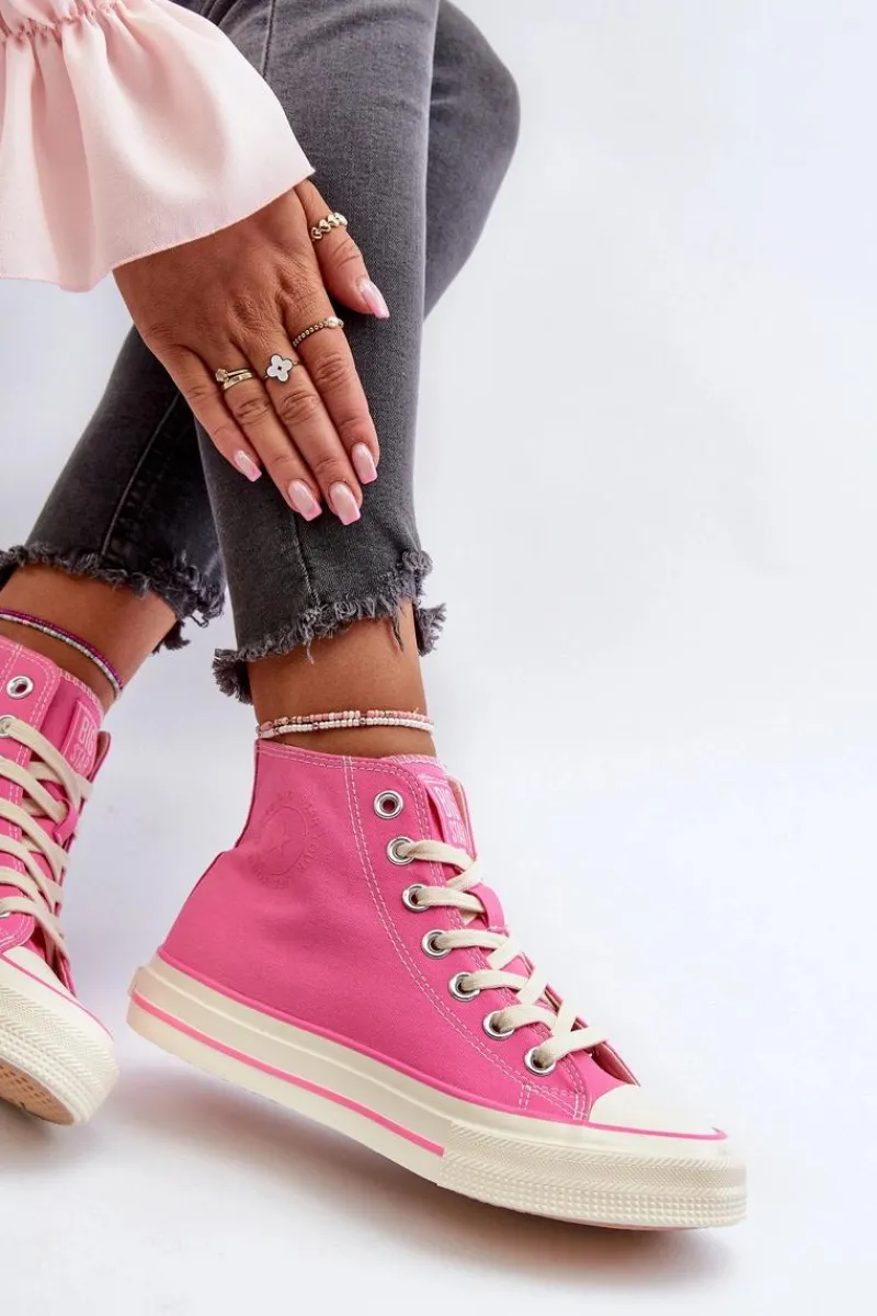 Damskie trampki marki Big Star. Wykonane z wysokiej jakości materiału tekstylnego. Cholewka sięgająca za kostkę dodaje stabilności, co jest szczególnie ważne podczas długich spacerów czy aktywności na świeżym powietrzu. W tych modnych trampkach będziesz czuć się swobodnie i stylowo jednocześnie! Przy wyborze rozmiaru prosimy sugerować się tabelą rozmiarów.