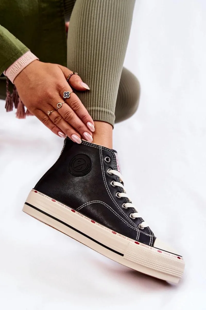 Trampki Damskie Cross Jeans|Trampki Ocieplane>Cross Jeans Damskie Wysokie Ocieplane Trampki KK2R4042C Czarne