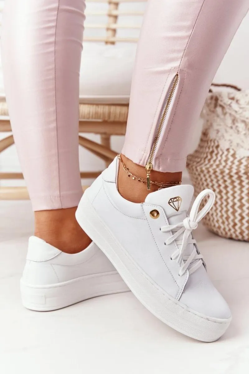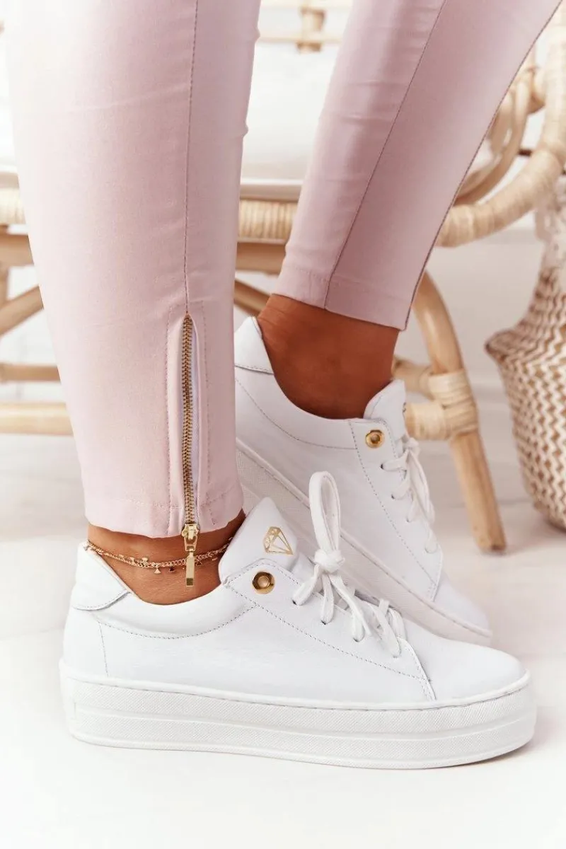 Damskie tenisówki na platformie marki Nicole. Buty wykonane są ze skóry naturalnej. Klasyczna forma pasuje do wielu stylizacji. Buty dobrze dopasowują się do kształtu stopy, posiadają miękką wkładkę ze skóry naturalnej. Koniecznie sprawdź całą naszą kolekcję damskich trampek! Przy wyborze rozmiaru prosimy sugerować się tabelą rozmiarów.