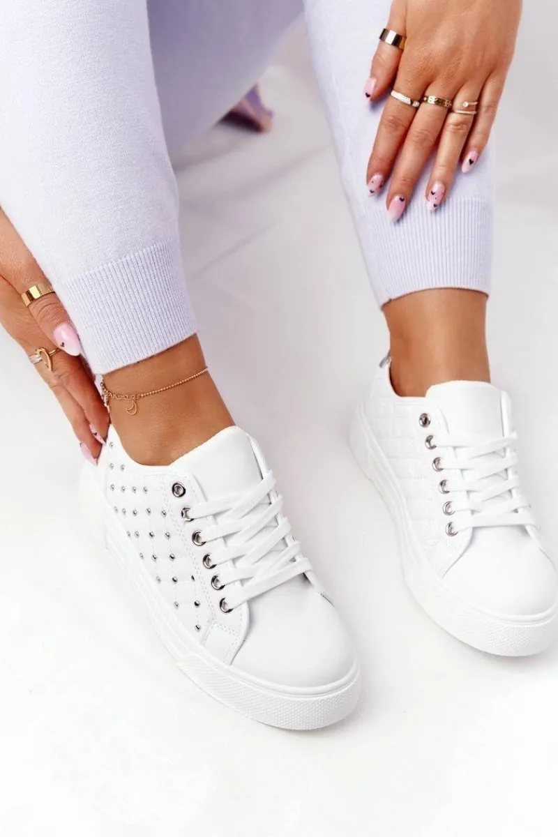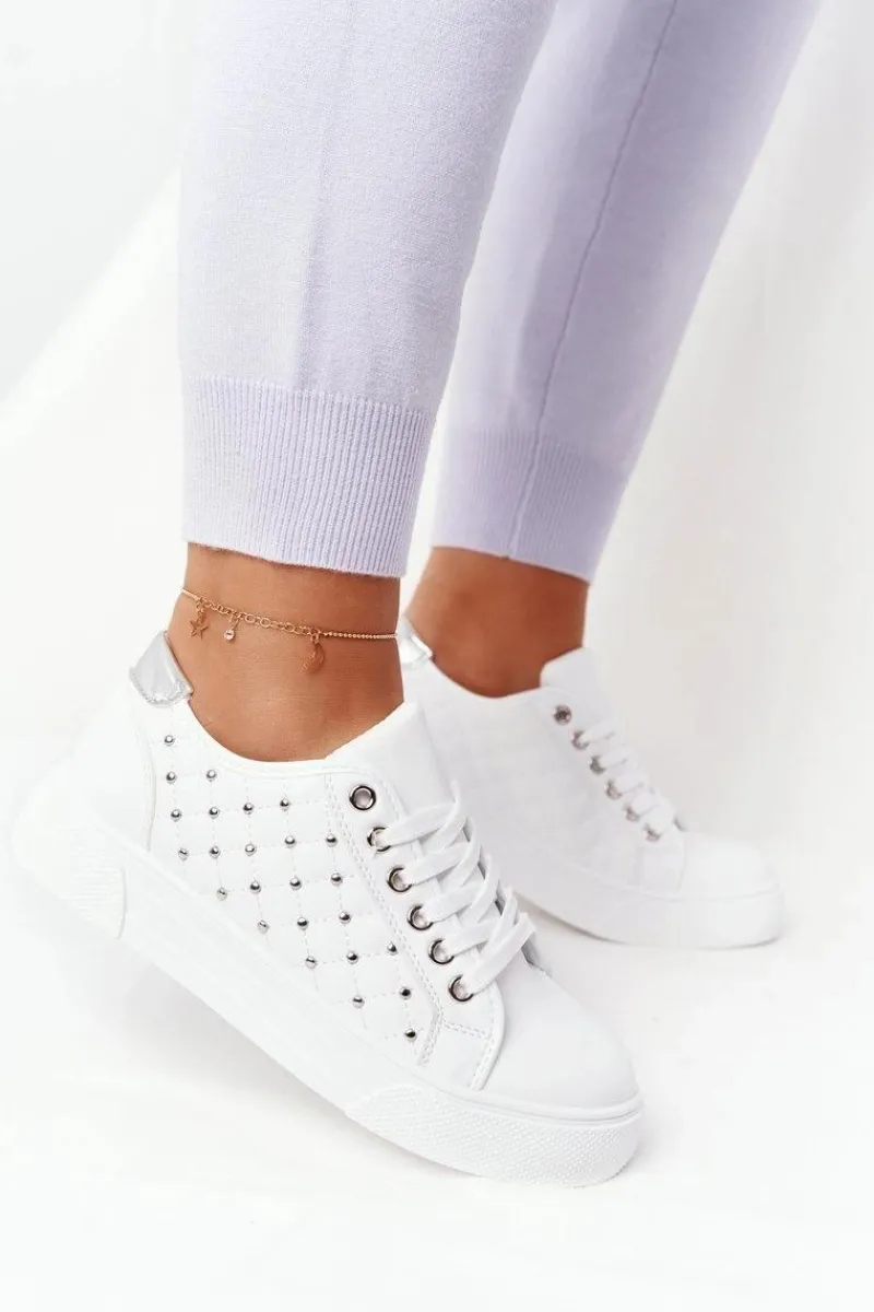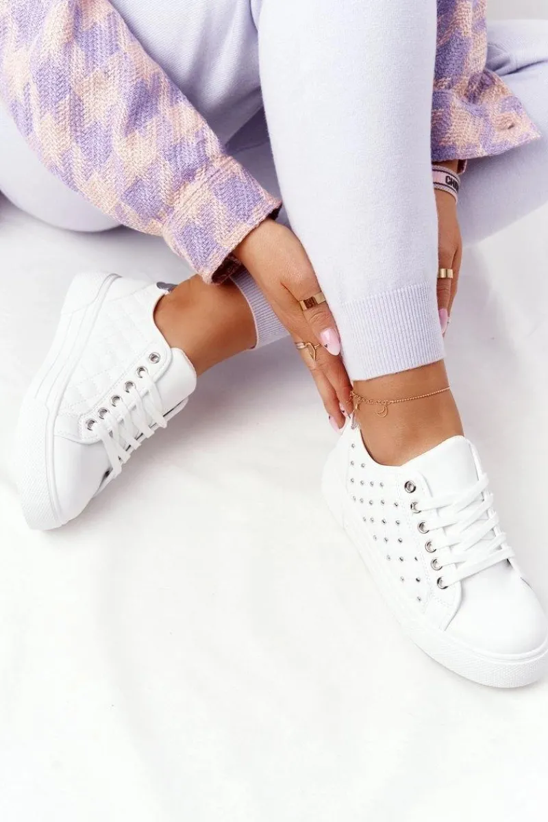 Wyjątkowe tenisówki damskie z pikowaniem. Buty wykonane są z eko skóry, posiadają materiałową wkładkę. Wyjątkowy model dopełni wiele Twoich stylizacji. Koniecznie sprawdź całą naszą kolekcję damskich tenisówek! Przy wyborze rozmiaru prosimy kierować tabelą rozmiarów.