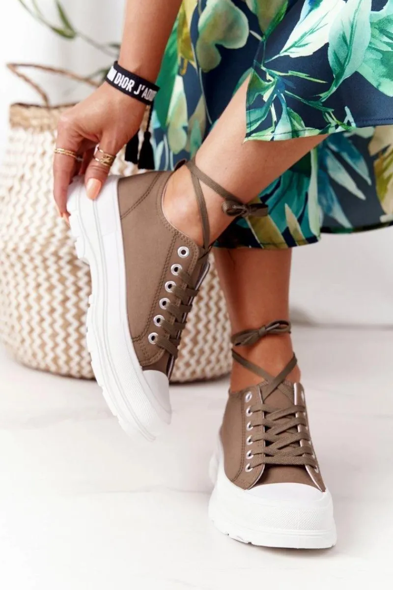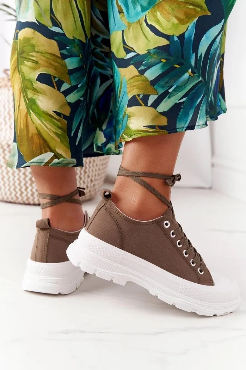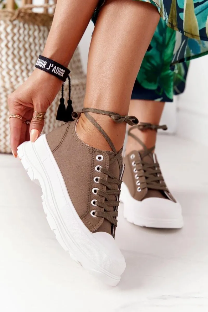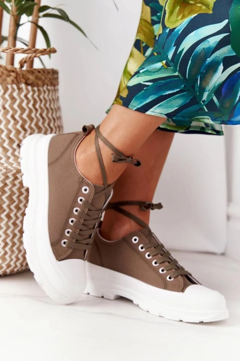 Trampki Damskie Niskie>Boto Damskie Trampki Na Platformie Brązowe Travel Time