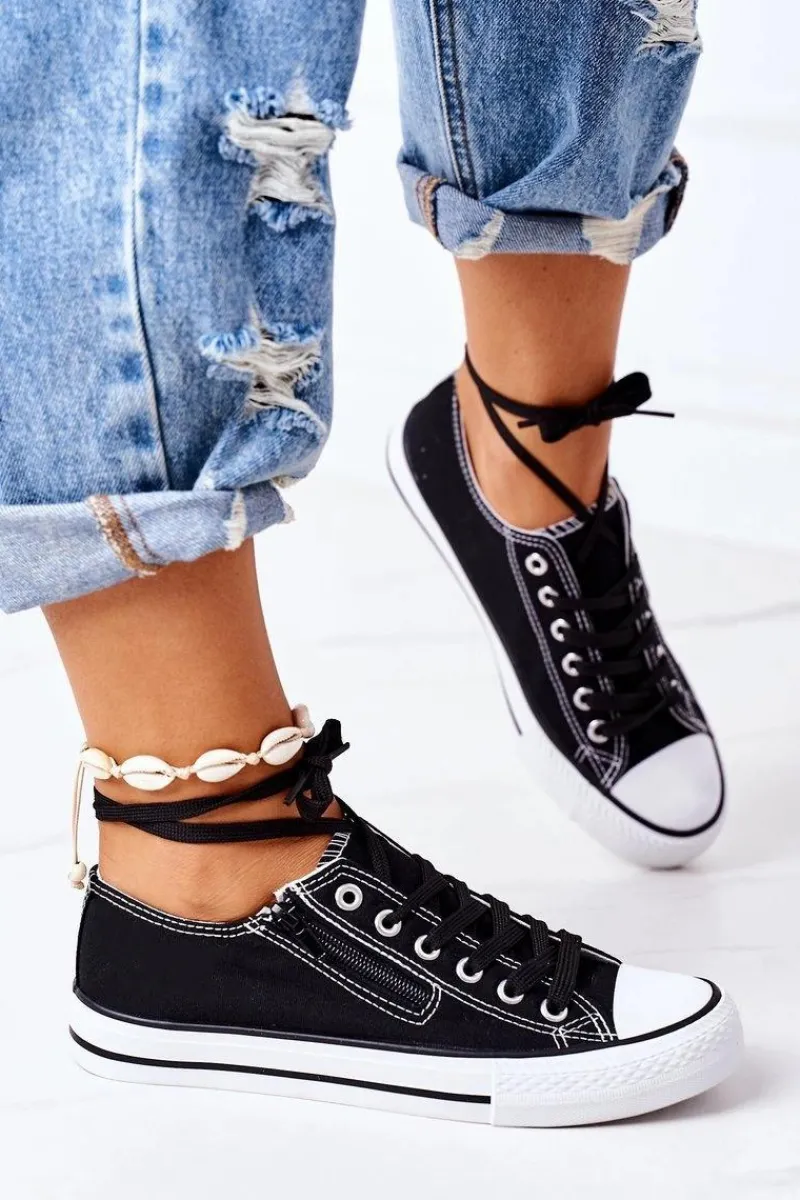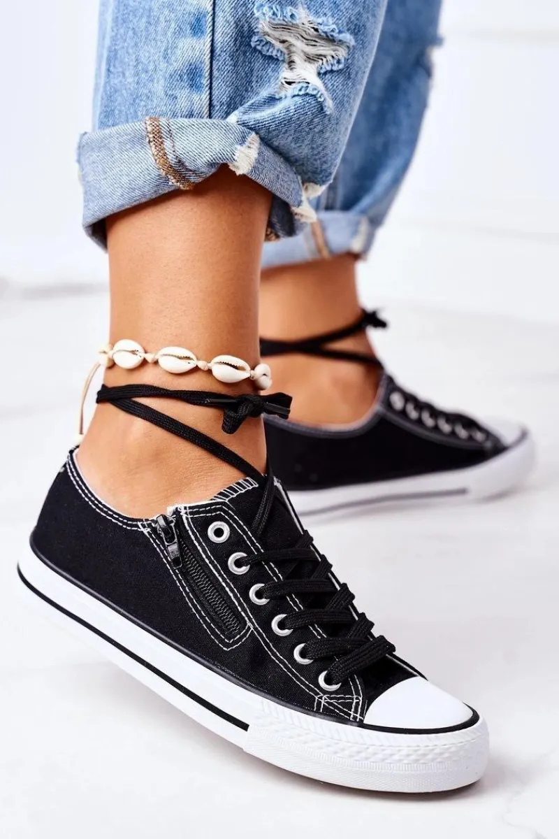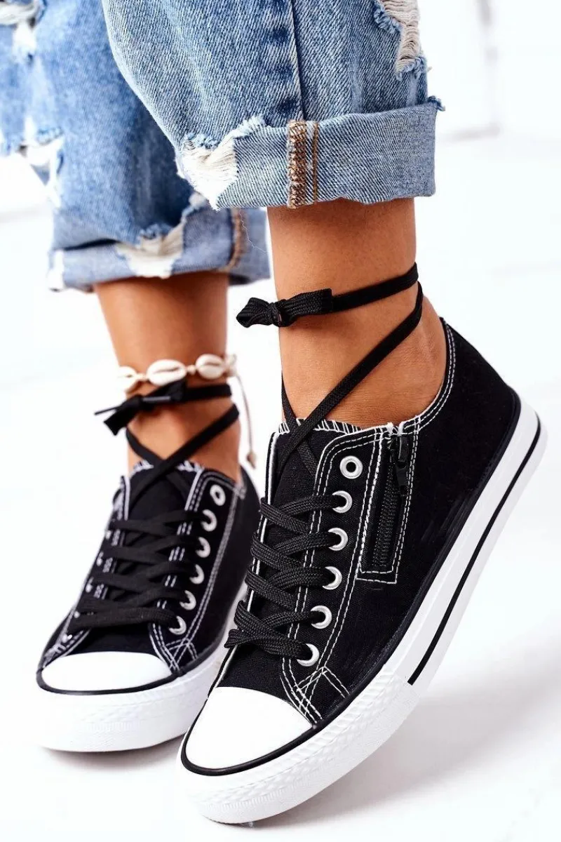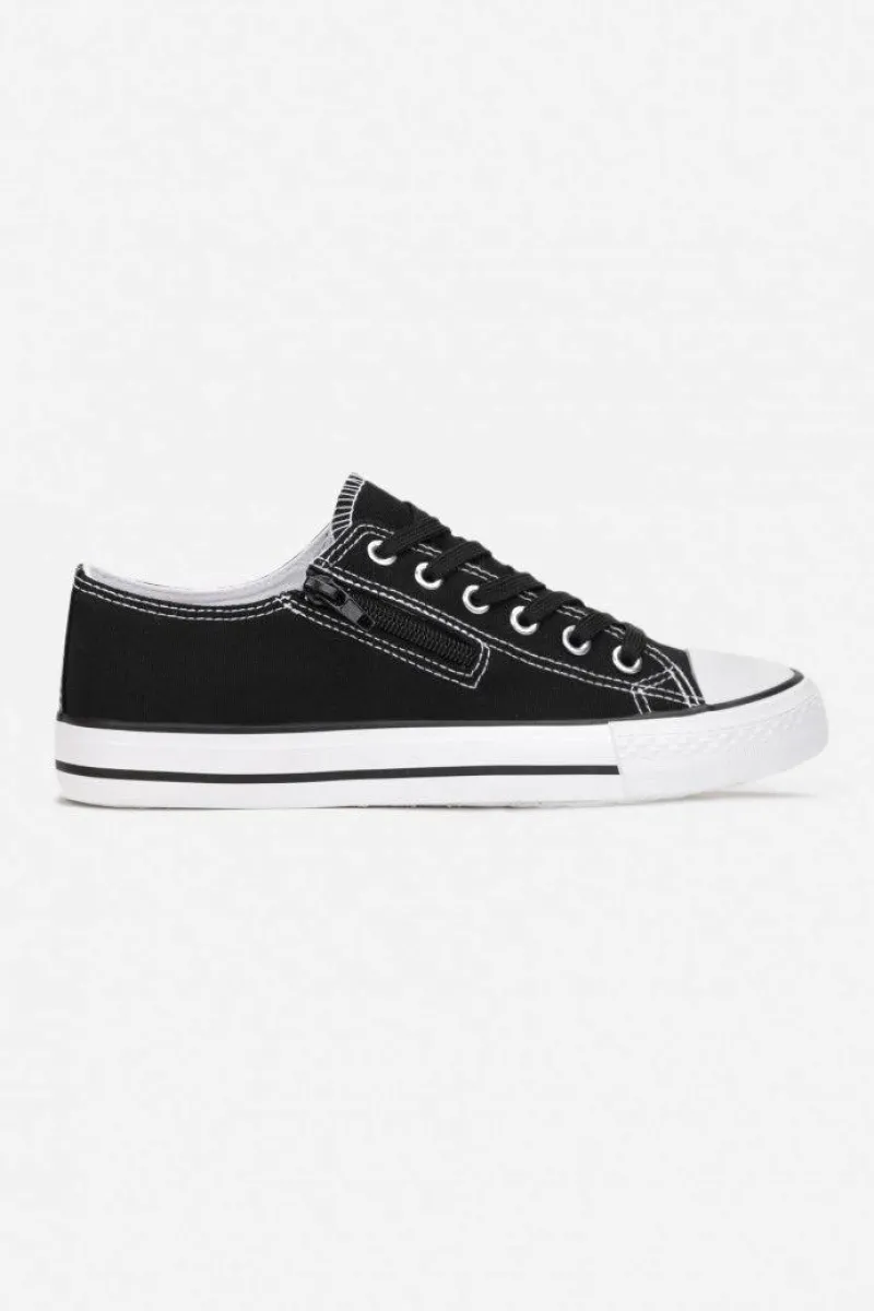 Klasyczne trampki damskie. Buty posiadają gumową podeszwę oraz miękką cholewkę. Wszyty suwak ułatwi zakładanie. Przy wyborze rozmiaru prosimy sugerować się tabelą rozmiarów.
