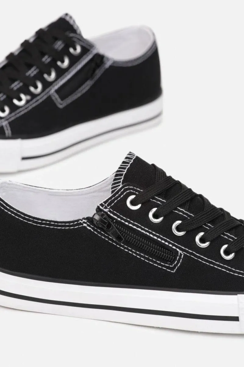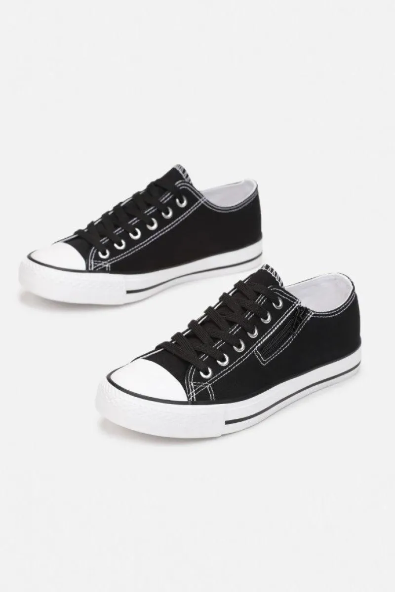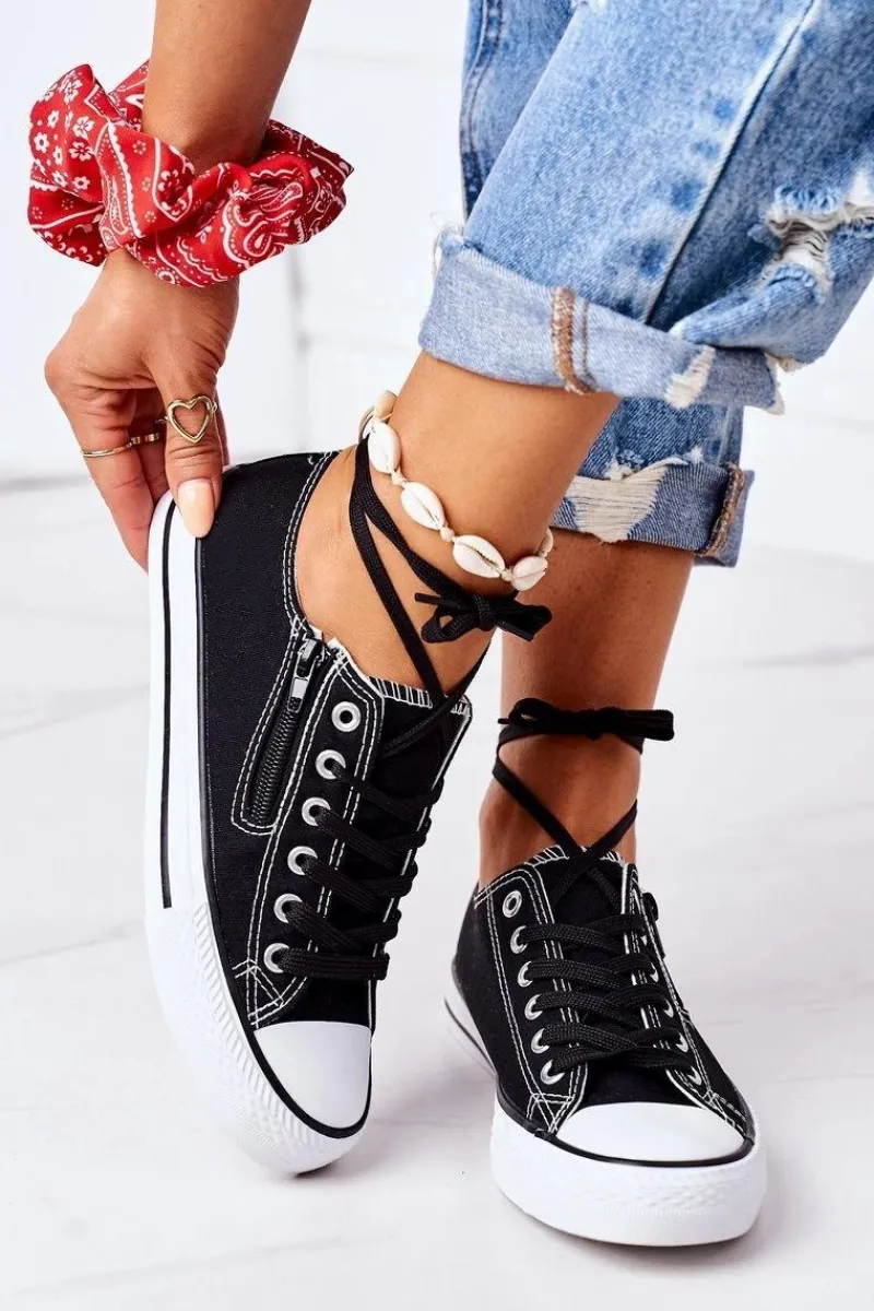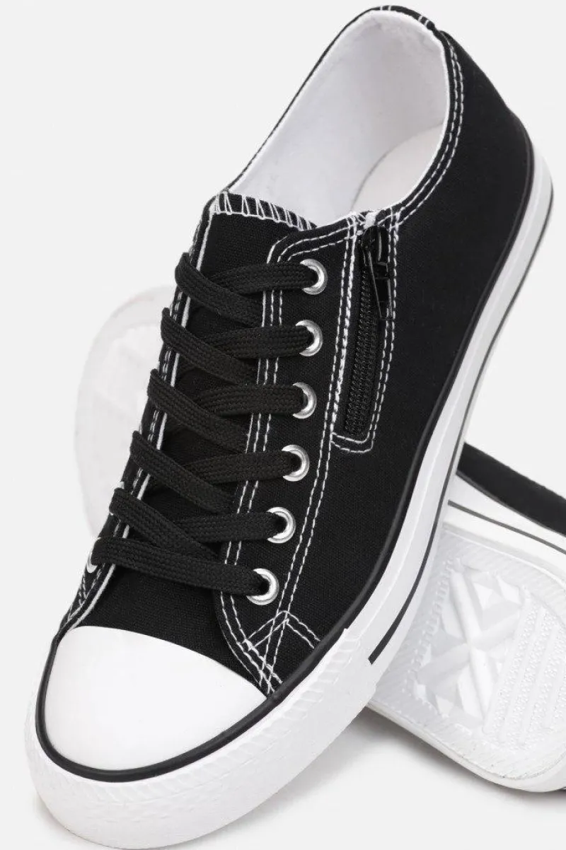 Klasyczne trampki damskie. Buty posiadają gumową podeszwę oraz miękką cholewkę. Wszyty suwak ułatwi zakładanie. Przy wyborze rozmiaru prosimy sugerować się tabelą rozmiarów.