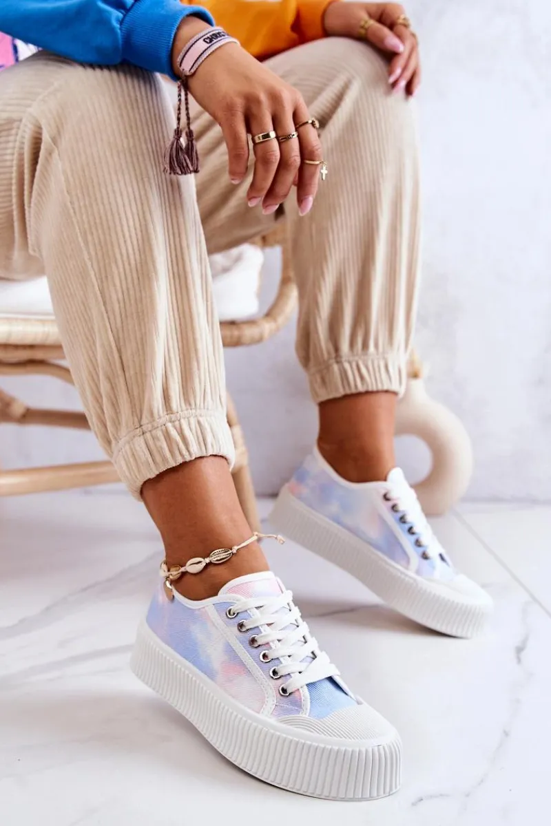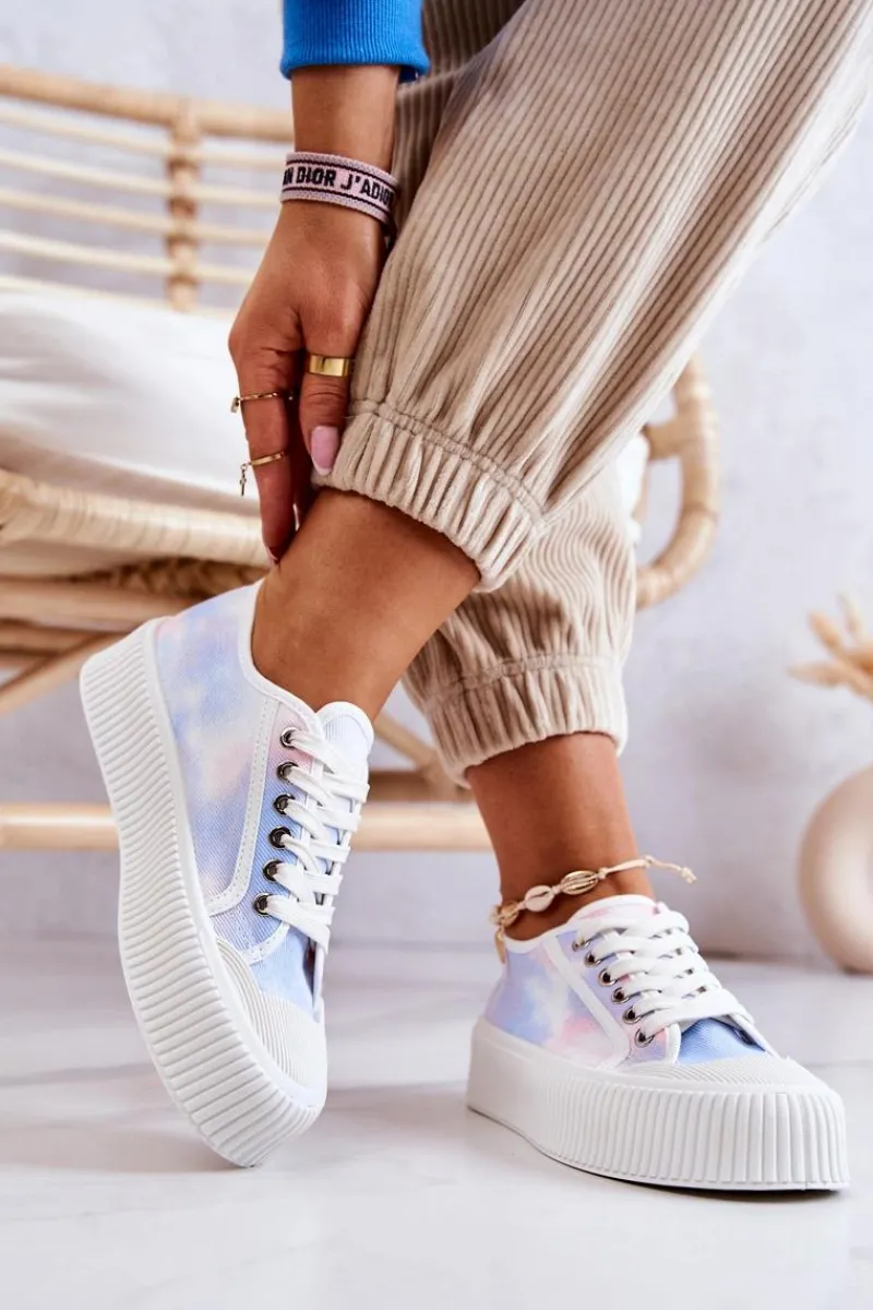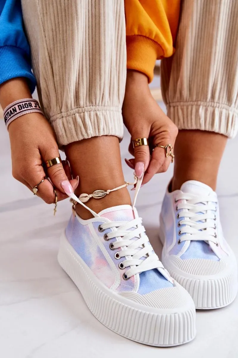 Modne trampki na masywnej, gumowej platformie. Buty posiadają materiałową cholewkę oraz antypoślizgową podeszwę. Świetny model, który będzie pasował do wielu stylizacji! Nosek jest wzmacniany gumowym tworzywem. Trampki posiadają klasyczne wiązanie. Koniecznie sprawdź całą naszą kolekcję trampek! Przy wyborze rozmiaru prosimy sugerować się tabelą rozmiarów.