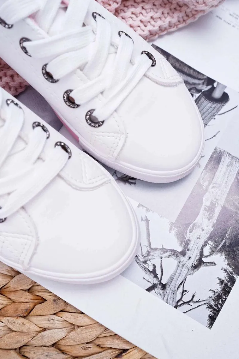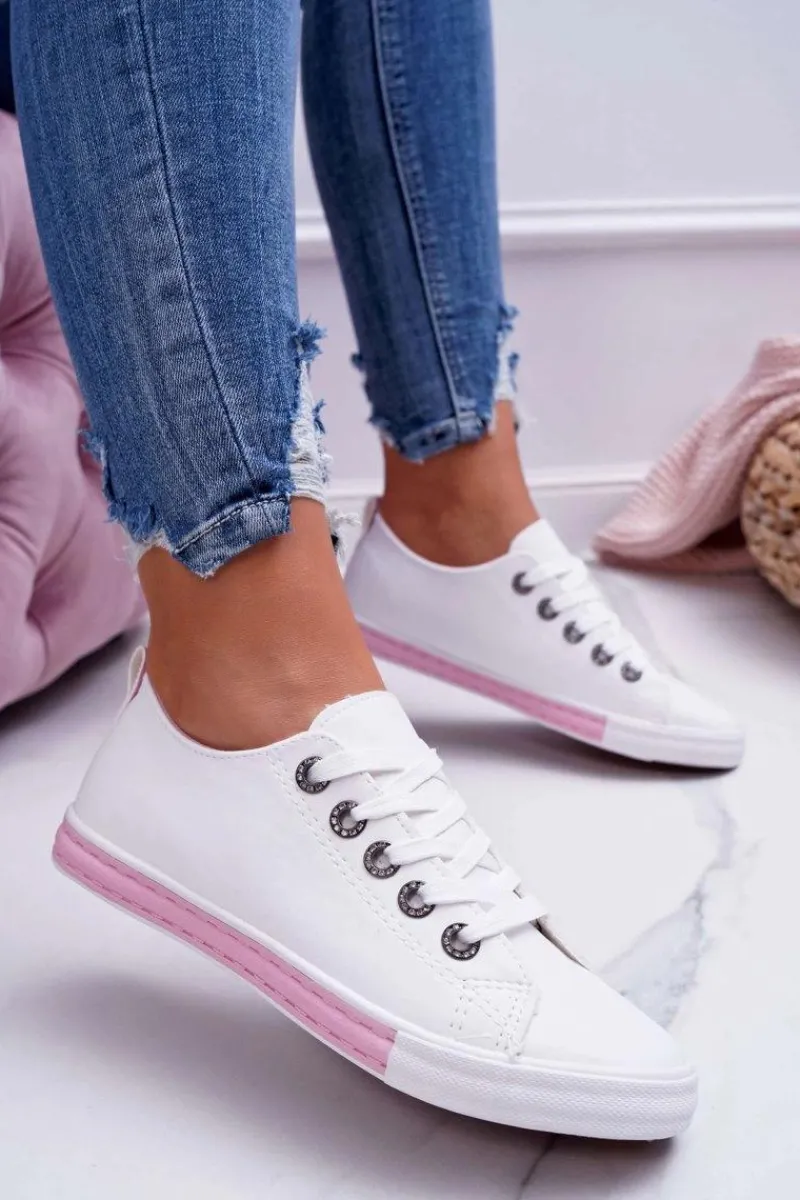 Trampki Damskie Niskie>Boto Trampki Damskie Białe Różowy Pasek Nigrid2