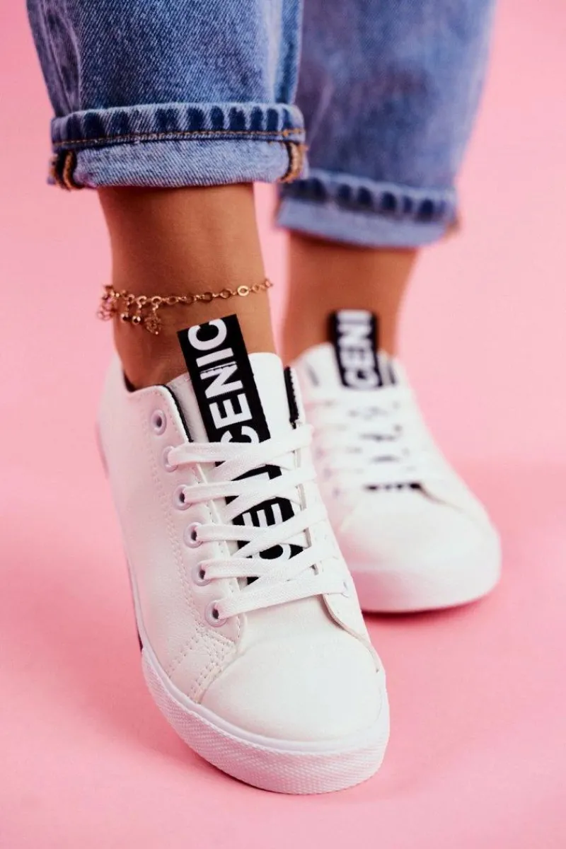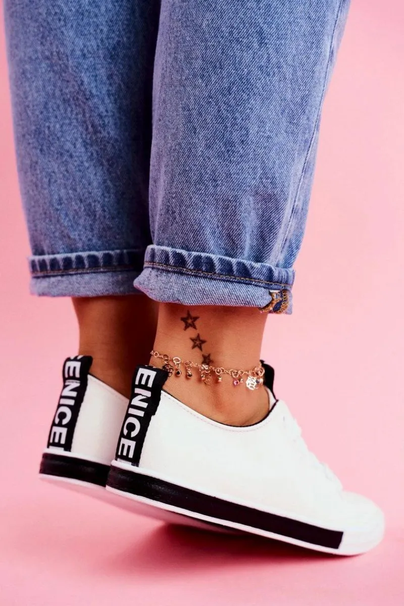 Klasyczne, niskie trampki to ponadczasowy model, który nigdy nie wyjdzie z mody. Pasują do wszystkiego, zarówno do jeansów jak i zwiewnych sukienek. Buty idealne na codzienne wypady na miasto. Modnym wykończeniem jest zdobienie na zapiętku i języku w postaci napisu NICE. Sprawdź całą naszą ofertę tenisówek ze skóry ekologicznej. Przy wyborze rozmiaru prosimy sugerować się tabelą rozmiarów.