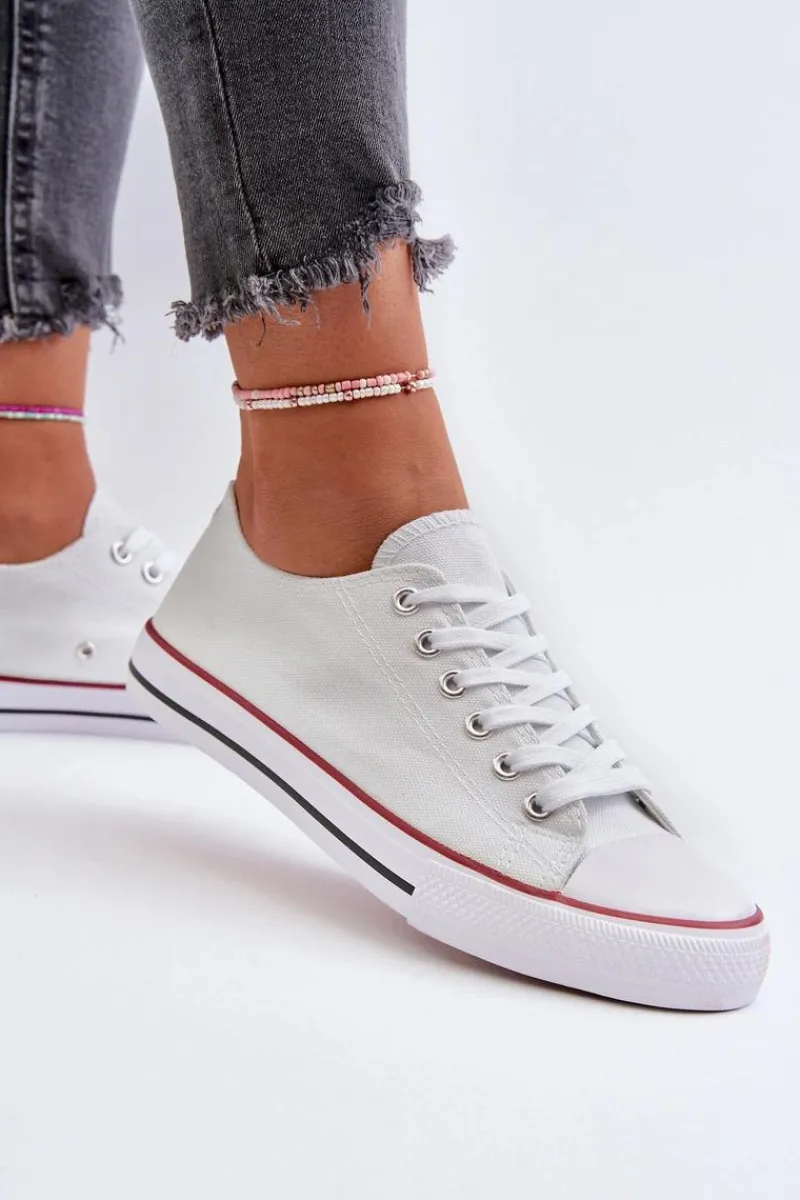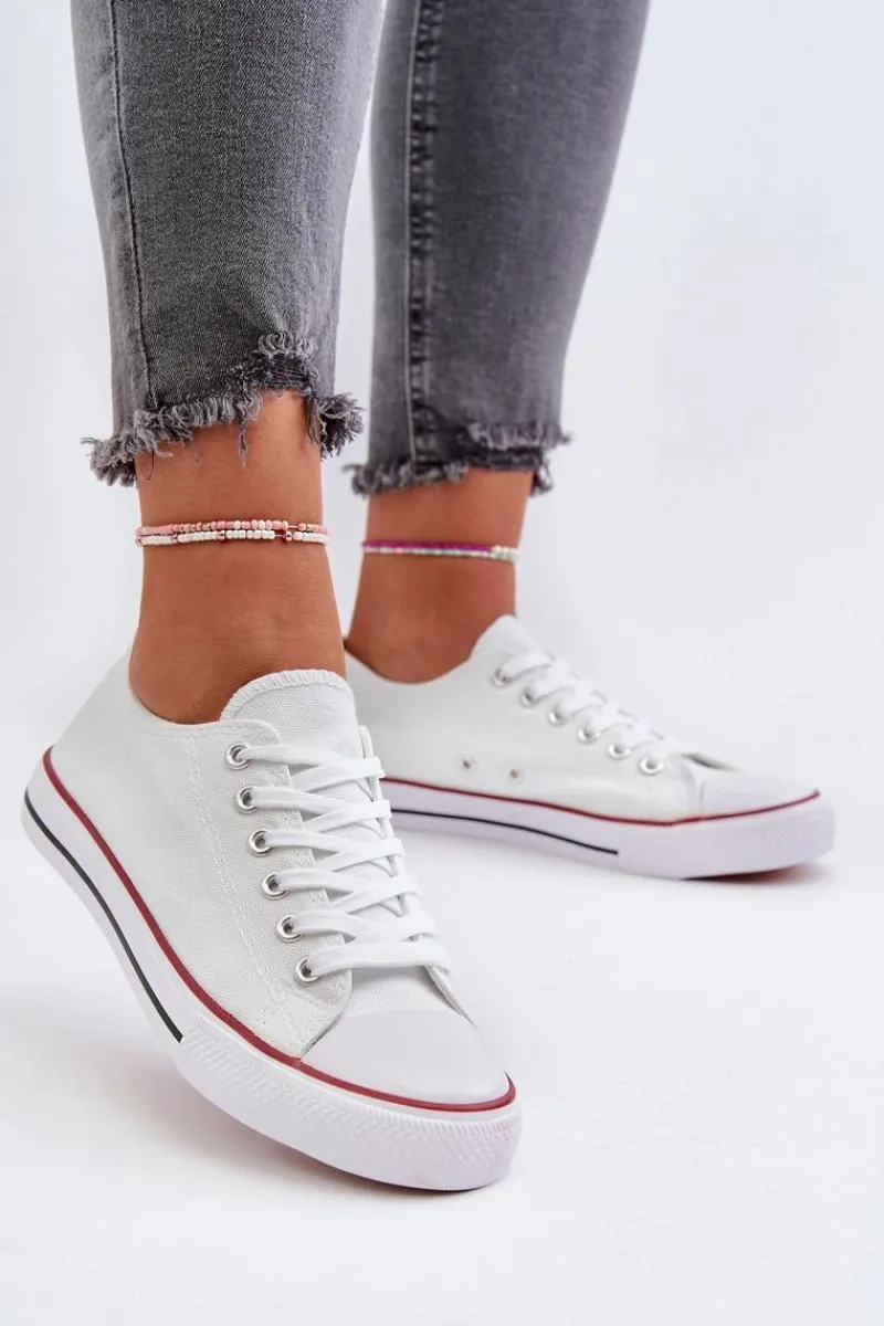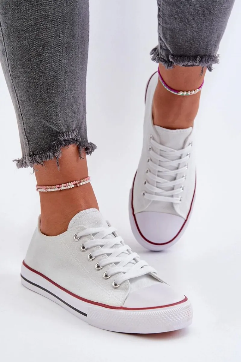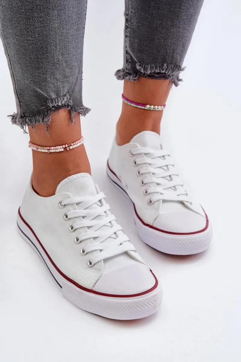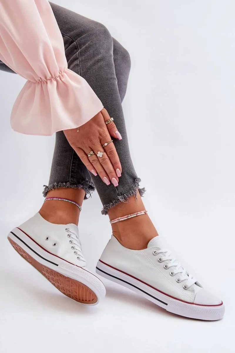 Trampki damskie w klasycznym stylu to niezawodny wybór na każdą okazję. Niski fason i sznurowane zapięcie zapewniają idealne dopasowanie oraz wygodę użytkowania. Te uniwersalne trampki doskonale pasują zarówno do codziennych, casualowych outfitów, jak i sportowych zestawów. Przy wyborze rozmiaru prosimy sugerować się tabelą rozmiarów.