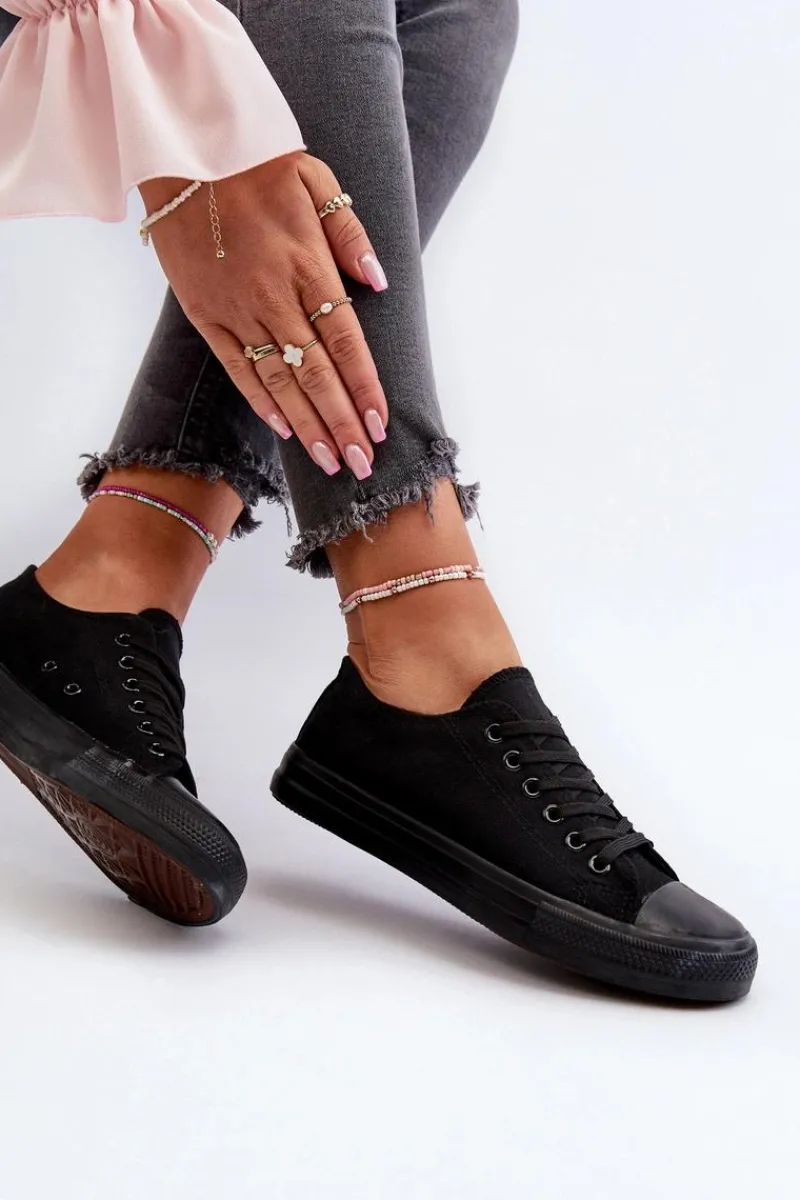 Trampki Damskie Niskie>Boto Trampki Damskie Klasyczne Niskie Czarne Caelira