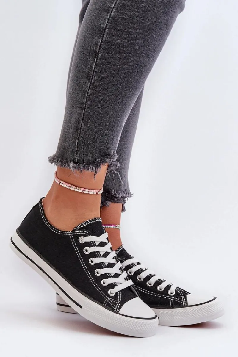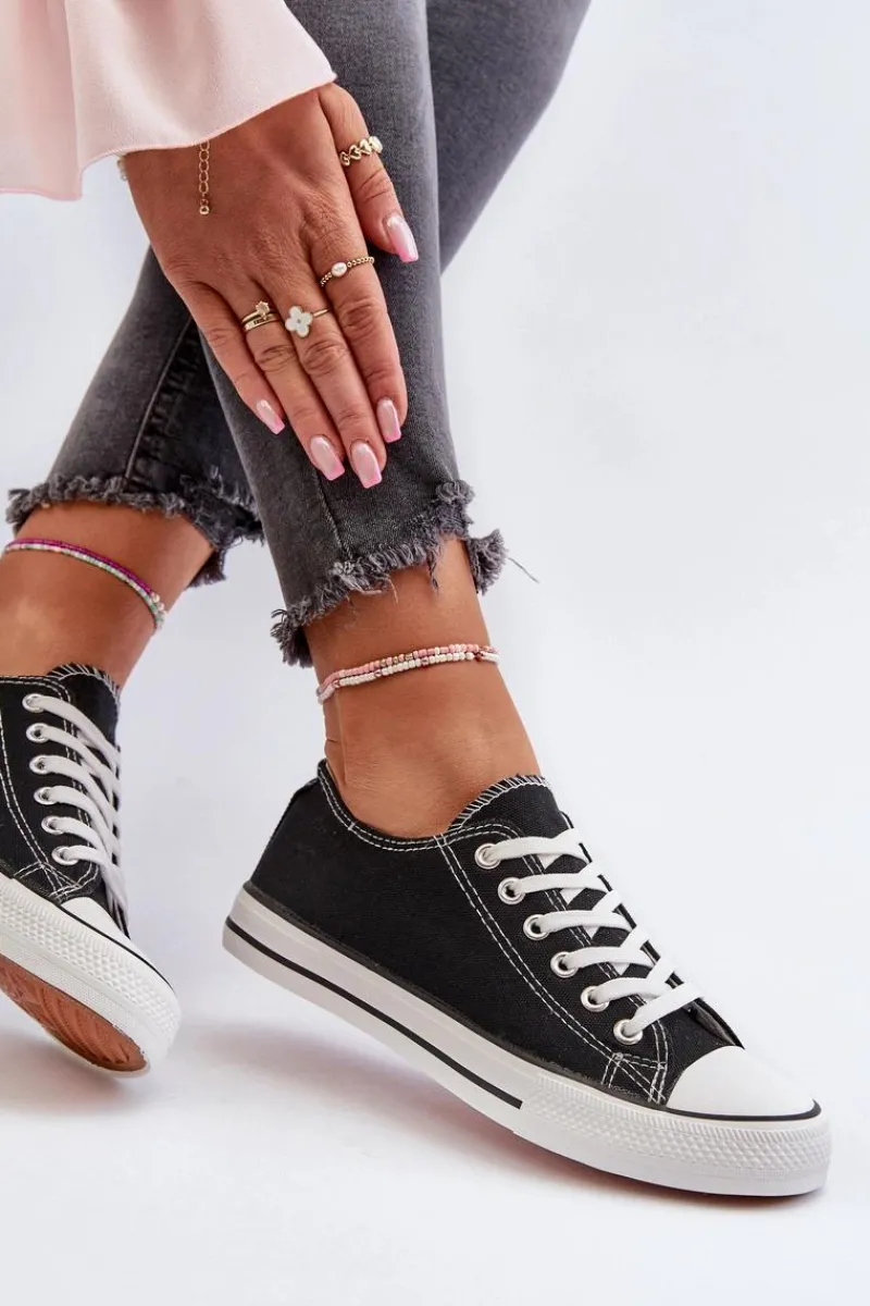 Trampki damskie w klasycznym stylu to niezawodny wybór na każdą okazję. Niski fason i sznurowane zapięcie zapewniają idealne dopasowanie oraz wygodę użytkowania. Te uniwersalne trampki doskonale pasują zarówno do codziennych, casualowych outfitów, jak i sportowych zestawów. Przy wyborze rozmiaru prosimy sugerować się tabelą rozmiarów.