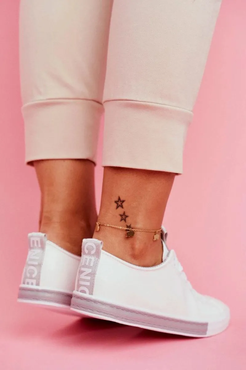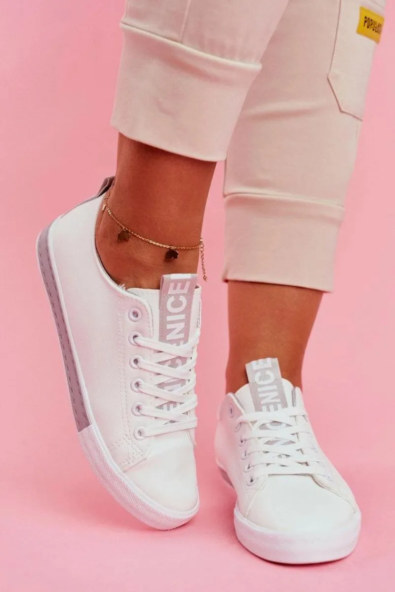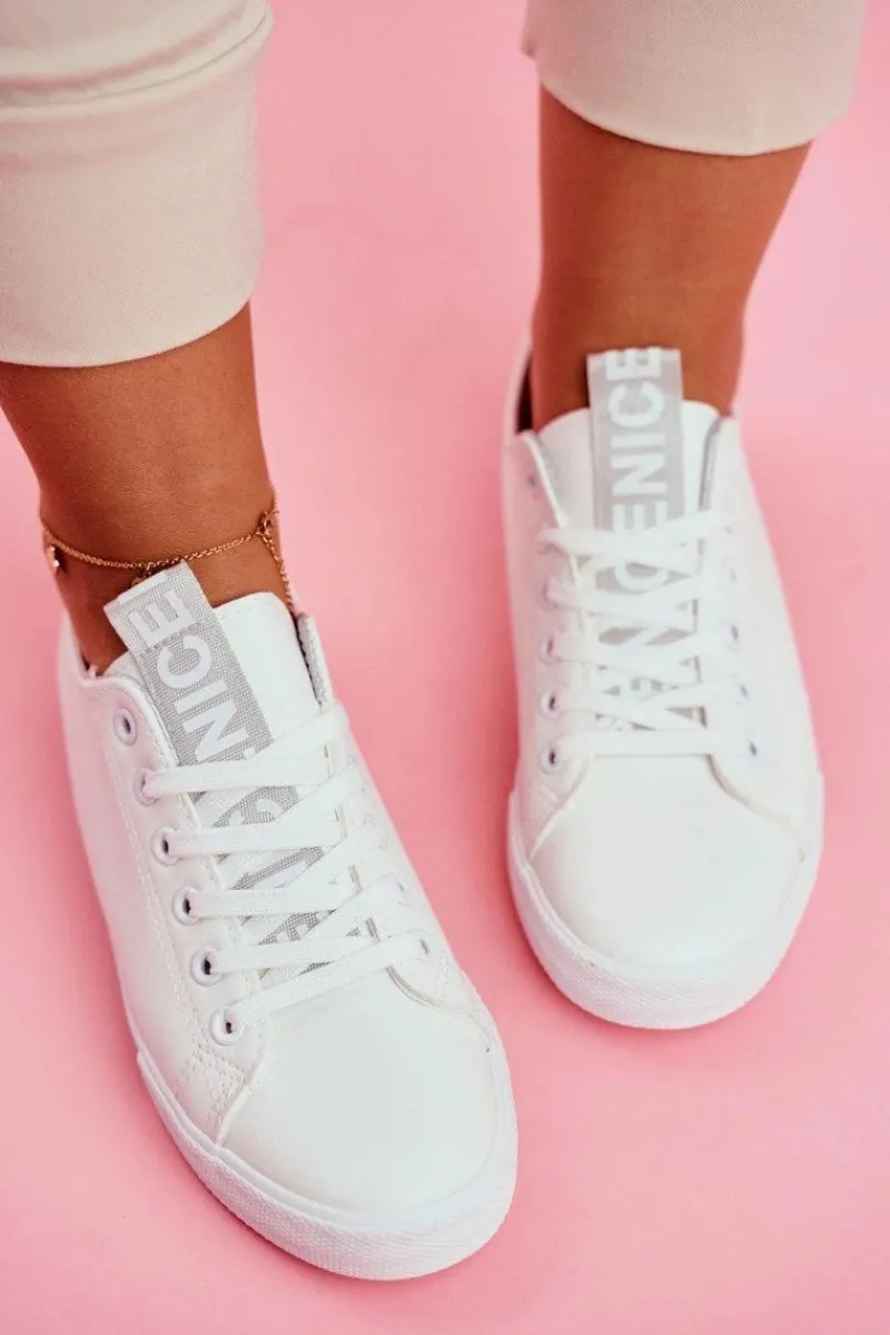 Klasyczne, niskie trampki to ponadczasowy model, który nigdy nie wyjdzie z mody. Pasują do wszystkiego, zarówno do jeansów jak i zwiewnych sukienek. Buty idealne na codzienne wypady na miasto. Modnym wykończeniem jest zdobienie na zapiętku i języku w postaci napisu NICE. Sprawdź całą naszą ofertę tenisówek ze skóry ekologicznej. Przy wyborze rozmiaru prosimy sugerować się tabelą rozmiarów.