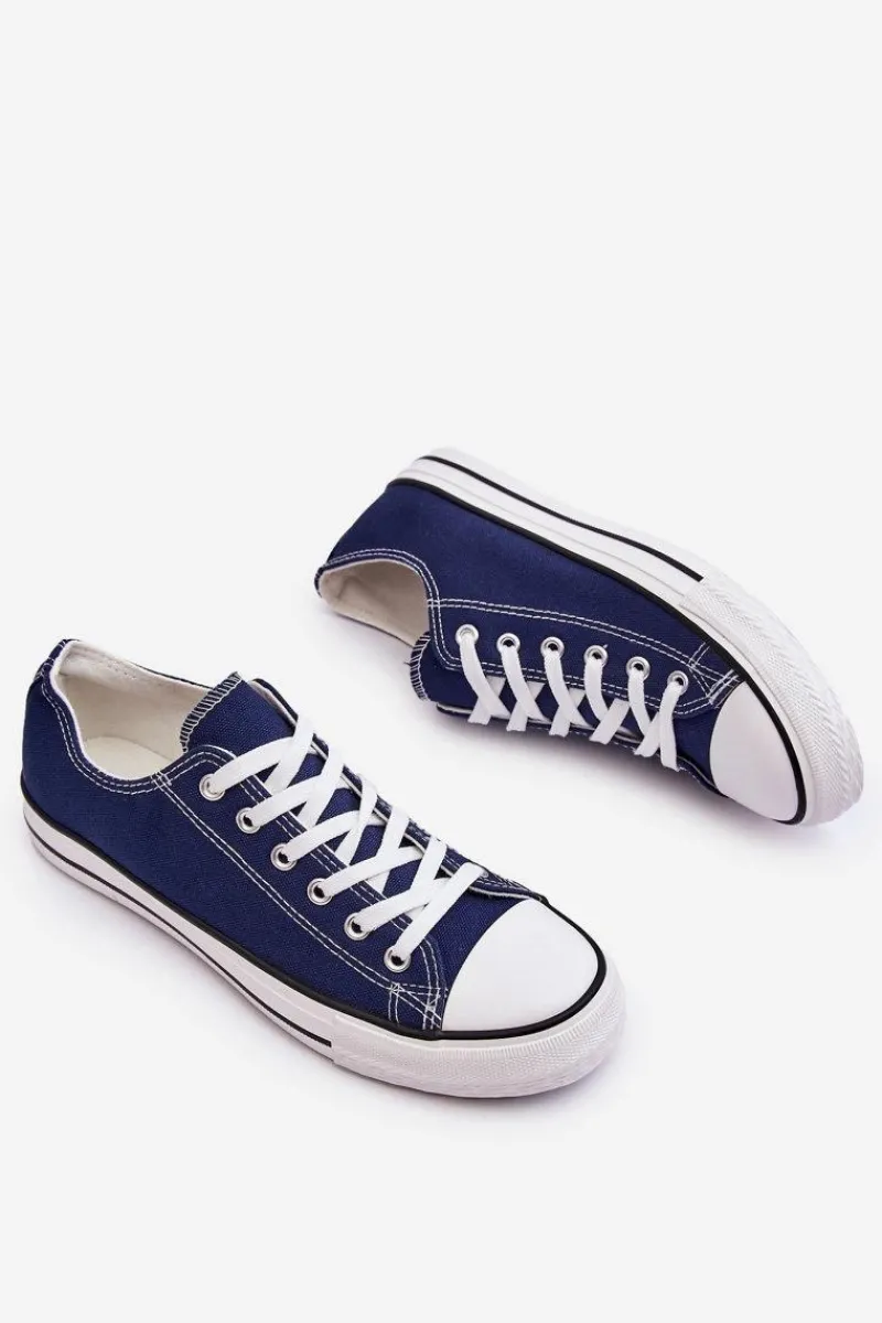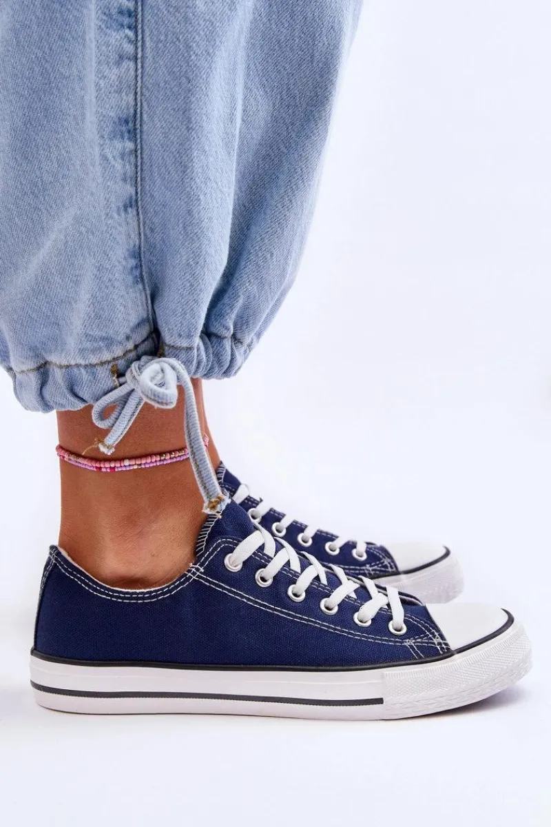 Klasyczne, sznurowane trampki damskie zostały wykonane z materiału tekstylnego. Posiadają gumową podeszwę, która jest dodatkowo antypoślizgowa. Ponadczasowy model, który powinnaś mieć w swojej szafie! Z pewnością założysz je do wielu stylizacji! Nosek został wzmocniony gumowym tworzywem. Wygodna, materiałowa wkładka zapewni komfort podczas użytkowania. Przy wyborze rozmiaru prosimy sugerować się tabelą rozmiarów.