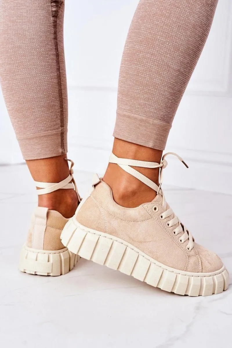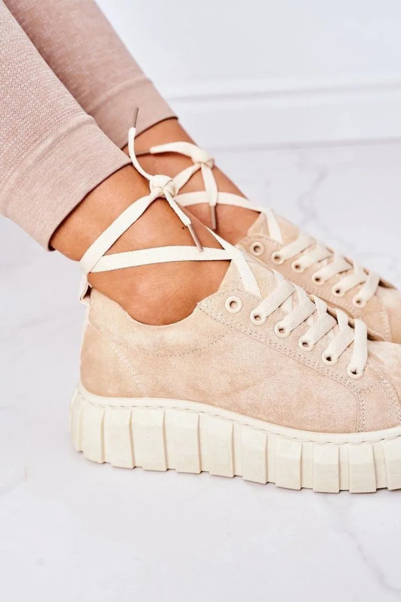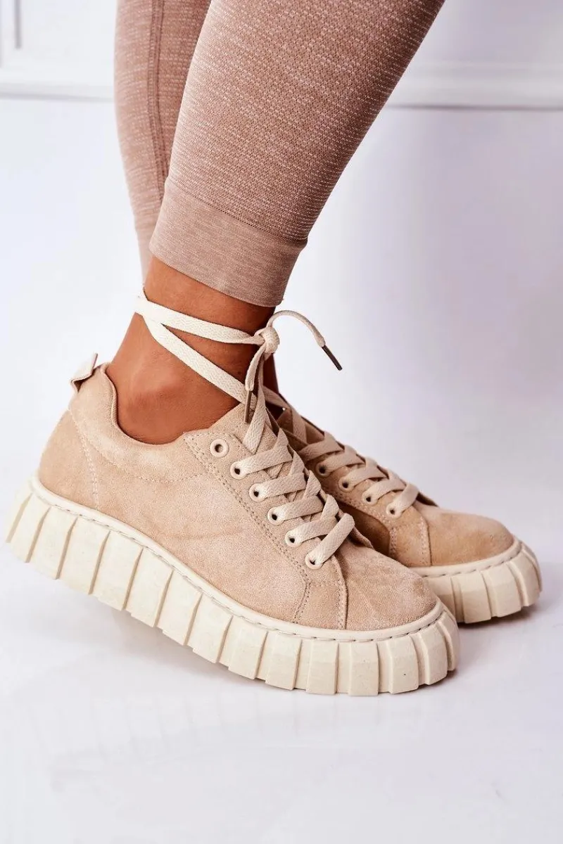 Modne tenisówki na dużej, gumowej platformie. Buty dobrze dopasowują się do kształtu stopy, posiadają cholewkę z eko zamszu oraz antypoślizgową podeszwę. Koniecznie sprawdź całą naszą kolekcję tenisówek! Przy wyborze rozmiaru prosimy sugerować się tabelą rozmiarów.