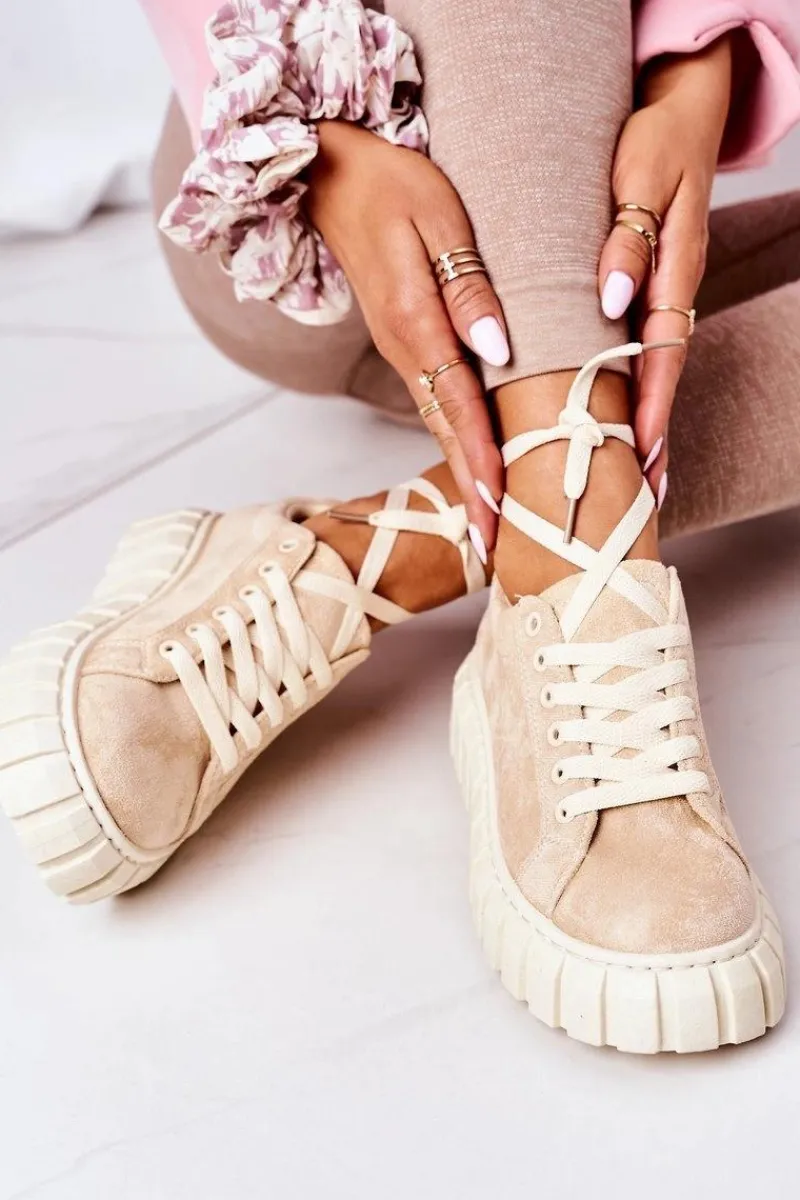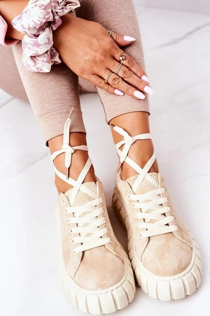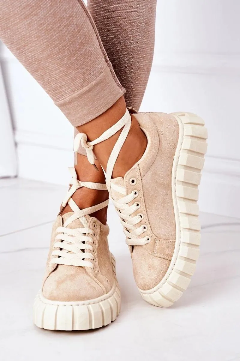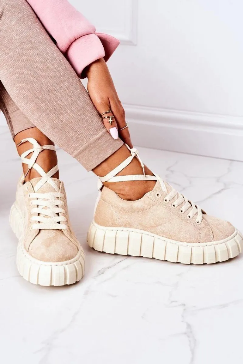 Modne tenisówki na dużej, gumowej platformie. Buty dobrze dopasowują się do kształtu stopy, posiadają cholewkę z eko zamszu oraz antypoślizgową podeszwę. Koniecznie sprawdź całą naszą kolekcję tenisówek! Przy wyborze rozmiaru prosimy sugerować się tabelą rozmiarów.
