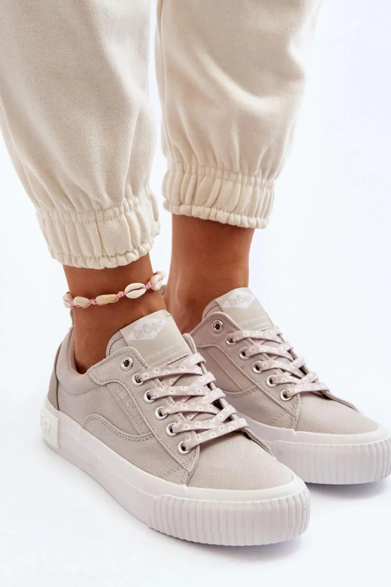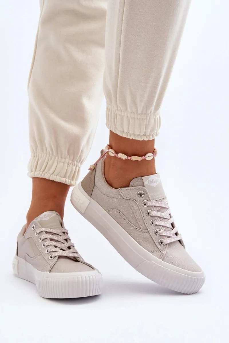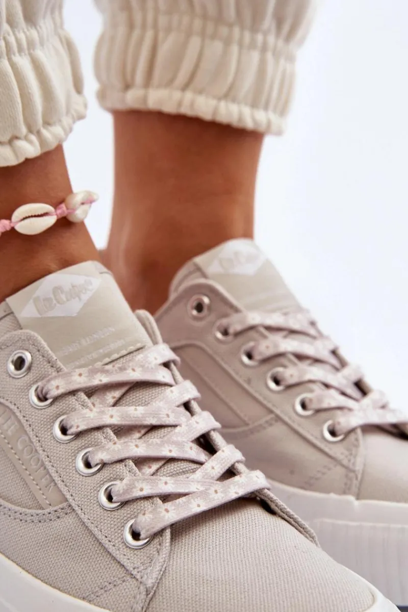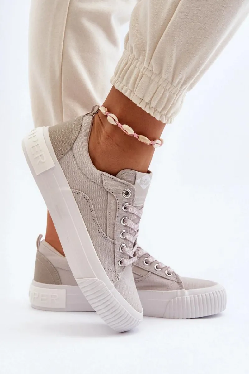 Trampki marki Lee Cooper to doskonały wybór dla tych, którzy cenią sobie zarówno wygodę, jak i styl! Wykonane z wysokiej jakości materiału tekstylnego. Posiadają klasyczne sznurowanie oraz duże logo marki umieszczone z tyłu na podeszwie. Miękka wkładka zapewni wygodę podczas użytkowania. Koniecznie powinnaś je mieć! Przy wyborze rozmiaru prosimy sugerować się poniższą tabelą rozmiarów.