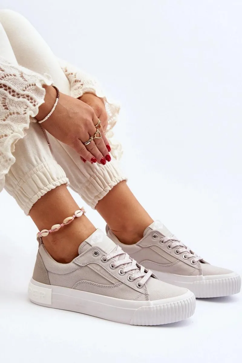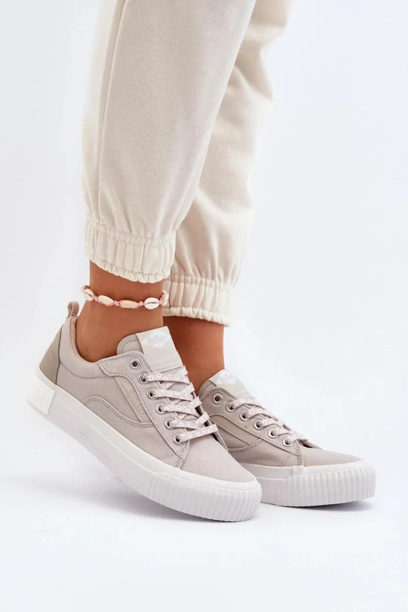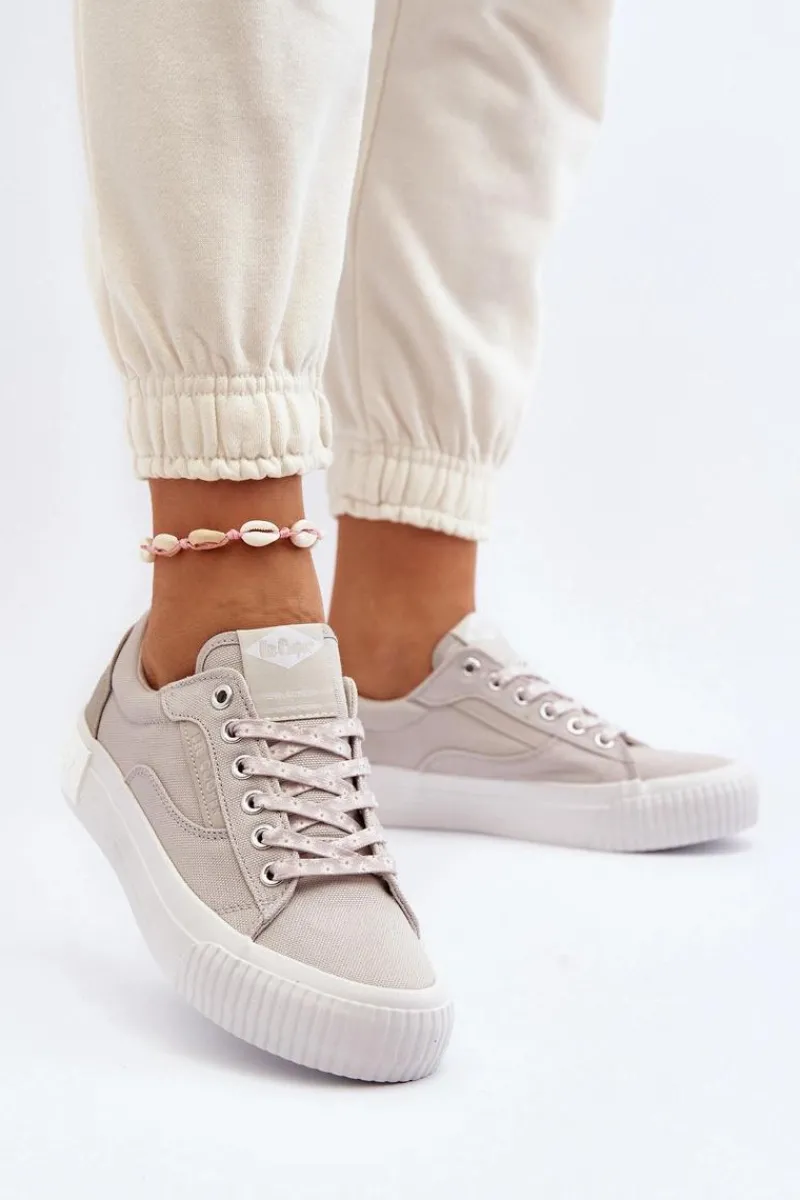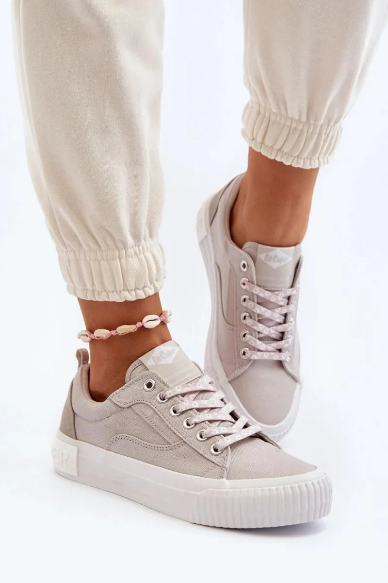 Trampki marki Lee Cooper to doskonały wybór dla tych, którzy cenią sobie zarówno wygodę, jak i styl! Wykonane z wysokiej jakości materiału tekstylnego. Posiadają klasyczne sznurowanie oraz duże logo marki umieszczone z tyłu na podeszwie. Miękka wkładka zapewni wygodę podczas użytkowania. Koniecznie powinnaś je mieć! Przy wyborze rozmiaru prosimy sugerować się poniższą tabelą rozmiarów.