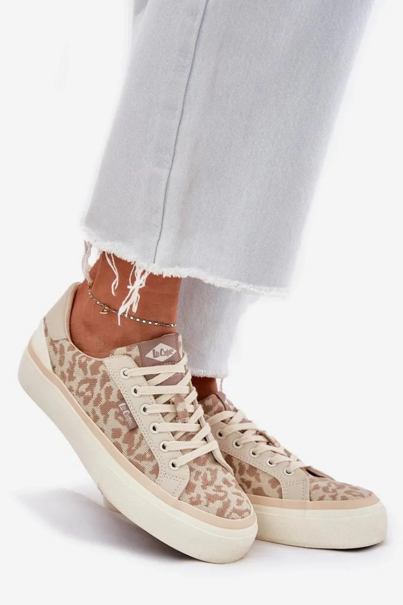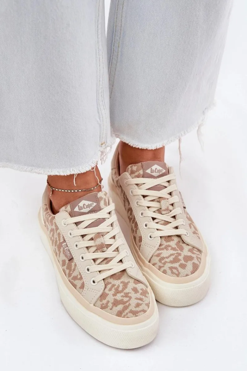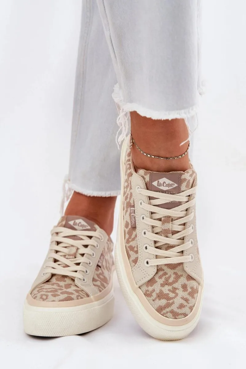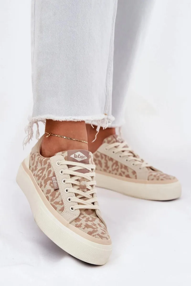 Trampki marki Lee Cooper to świetna opcja dla osób szukających połączenia komfortu i modnego wyglądu. Wykonane z wysokiej jakości materiału tekstylnego, zapewniają trwałość i przewiewność. Klasyczne sznurowanie umożliwia idealne dopasowanie, a subtelne logo umieszczone na tyle podeszwy dodaje im charakteru. Dzięki miękkiej wkładce te trampki oferują wygodę przez cały dzień. Must-have w Twojej szafie na codzienne stylizacje! Przy wyborze rozmiaru prosimy sugerować się poniższą tabelą rozmiarów.