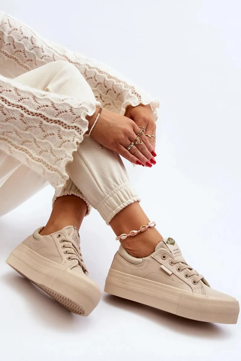 Trampki na masywnej platformie marki Lee Cooper to odpowiedni wybór dla osób ceniących sobie wygodę oraz styl! Wykonane z materiału tekstylnego. Miękka wkładka zapewni komfort podczas użytkowania. Noski zaokrąglone. Z boku wszyte małe logo. Ten klasyczny fason idealnie dopełni wiele wiosenno-letnich stylizacji! Przy wyborze rozmiaru prosimy sugerować się poniższą tabelą rozmiarów.