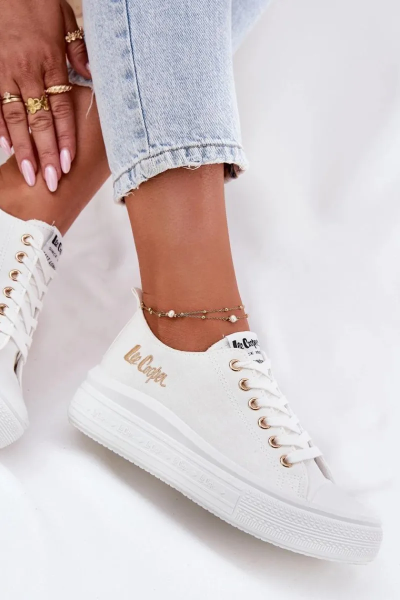 Damskie trampki marki Lee Cooper, wykonane z materiału tekstylnego, to doskonały wybór na co dzień. Osadzone na platformie, zapewniają wygodę i lekkość podczas chodzenia. Zaokrąglone noski gwarantują komfort, a miękka materiałowa wkładka dba o odpowiednią amortyzację. Subtelne logo na boku cholewki dodaje eleganckiego akcentu, a klasyczne sznurowanie umożliwia idealne dopasowanie do stopy. Te trampki świetnie komponują się z codziennymi stylizacjami, łącząc wygodę z modnym wyglądem. Przy wyborze rozmiaru prosimy sugerować się tabelą rozmiarów.