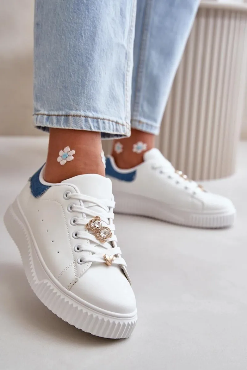 Niskie trampki damskie wykonane z eko skóry to połączenie stylu i wygody. Osadzone na platformie, te trampki wyróżniają się uroczymi przypinkami na sznurowadłach, które dodają im wyjątkowego uroku. To idealne obuwie do codziennych stylizacji, które łączy modny wygląd z komfortem noszenia. Przy wyborze rozmiaru prosimy sugerować się tabelą rozmiarów.