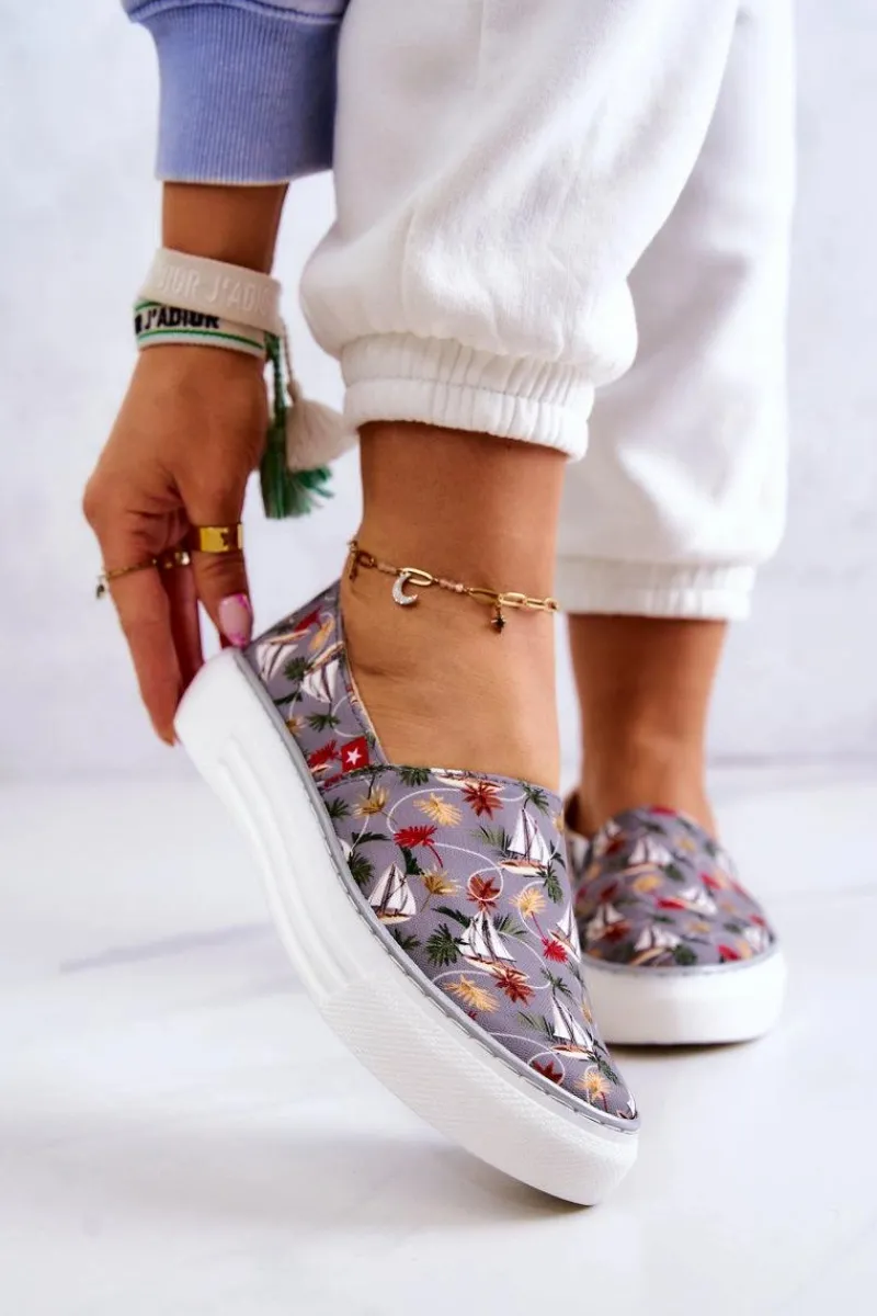 Tenisówki z cholewką przed kostkę posiadają ciekawy wzór, który idealnie pasuje na nadchodzący wiosenno-letni sezon. Osadzone na masywnej platformie z okrągłym noskiem. Model wsuwany. Wykonane z wysokiej jakości materiału tekstylnego. Świetnie będą wyglądać z wieloma stylizacjami – zwiewną sukienką czy spodniami. Posiadają wkładkę Memory Foam System, która zapamiętuje kształt stopy, zapewnia doskonałe dopasowanie, absorbuje wstrząsy, jest odporna na odkształcenia oraz pozwala na odparowywanie wilgoci i regulacje temperatury.Przy wyborze rozmiaru prosimy sugerować się tabelą rozmiarów.