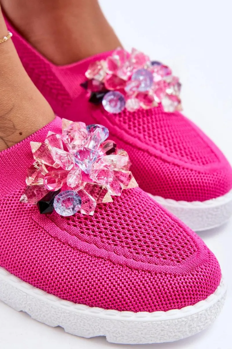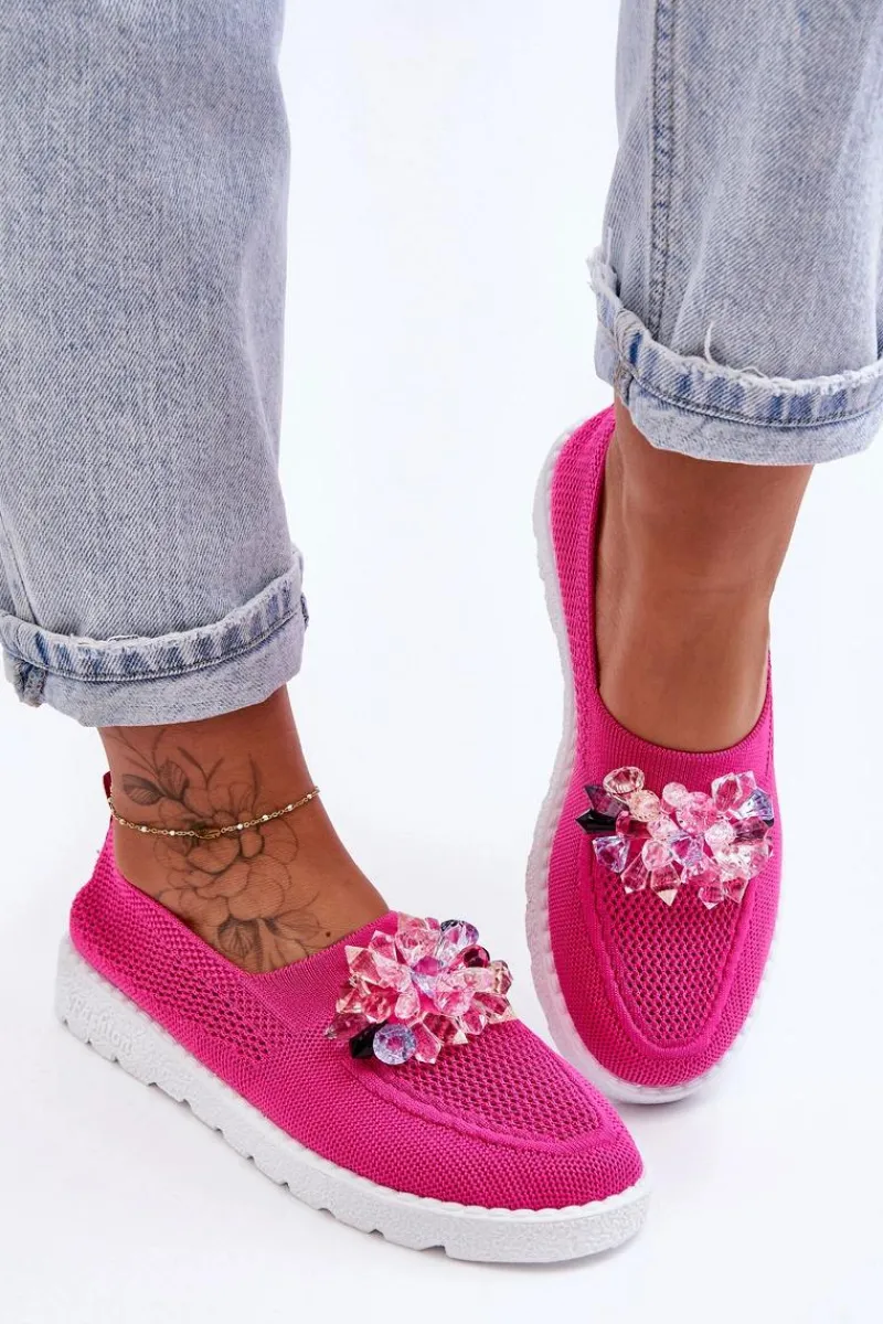 Klasyczne tenisówki zostały wzbogacone o piękne kamienie w różnych kolorach. Cholewka została wykonana z przewiewnego materiału tekstylnego. Wkładka w tym obuwiu została wykonana z połączenia materiału i pianki. Tenisówki osadzono na platformie i płaskim obcasie. Idealny model do wielu stylizacji! Przy wyborze rozmiaru prosimy sugerować się tabelą rozmiarów.