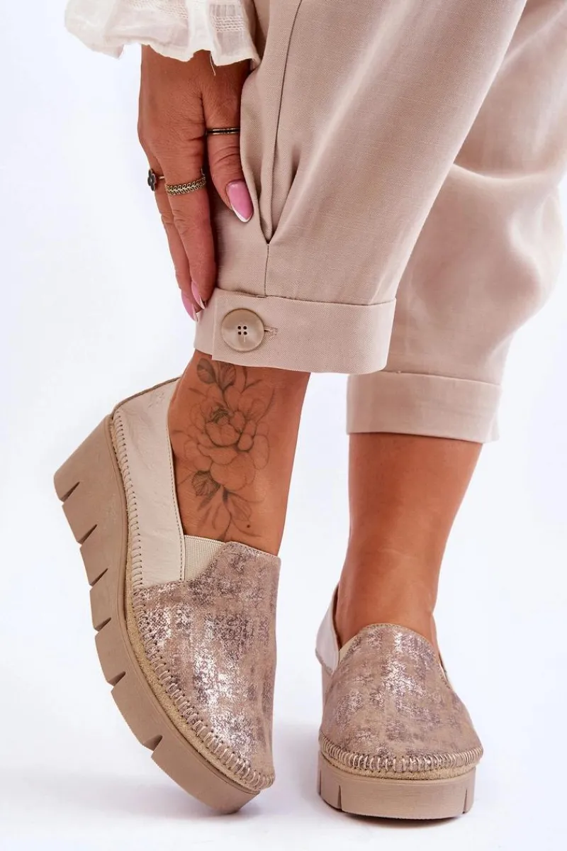 Tenisówki slip-on marki Maciejka z cholewką przed kostkę zostały wykonane ze skóry naturalnej. Osadzone na delikatnej platformie i koturnie. Wygodne i komfortowe w użytkowaniu obuwie. Trampki posiadają gumki przytrzymujące stopę przed przesuwaniem. Koniecznie sprawdź także pozostałe modele tenisówek! Przy wyborze rozmiaru prosimy sugerować się tabelą rozmiarów.