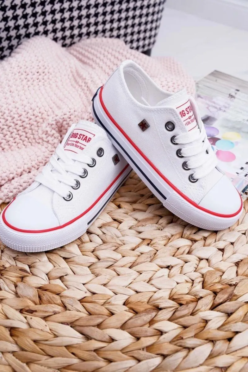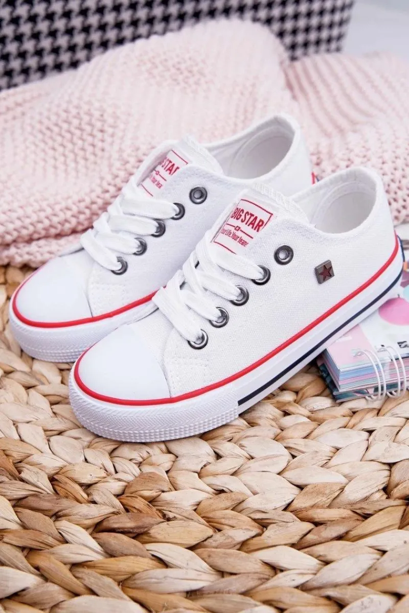 Klasyczne trampki od firmy BIG STAR. Trampki wykonane są z wysokiej jakości materiału, który jest odporny na działanie czynników zewnętrznych. Trampki dobrze dopasowują się do kształtu stopy oraz posiadają funkcjonalną, antypoślizgową podeszwę. Ponadczasowy wzór dostępny w wielu kolorach. Koniecznie sprawdź całą naszą kolekcję butów BIG STAR. Rozmiary 17-21 posiadają trzy oczka do sznurówek, natomiast rozmiary 22-27 posiadają 4 oczka. Przy wyborze rozmiaru prosimy sugerować się tabelą rozmiarów.