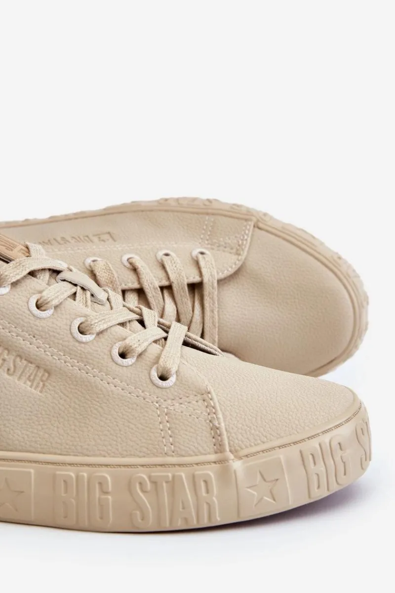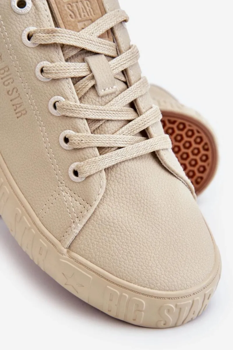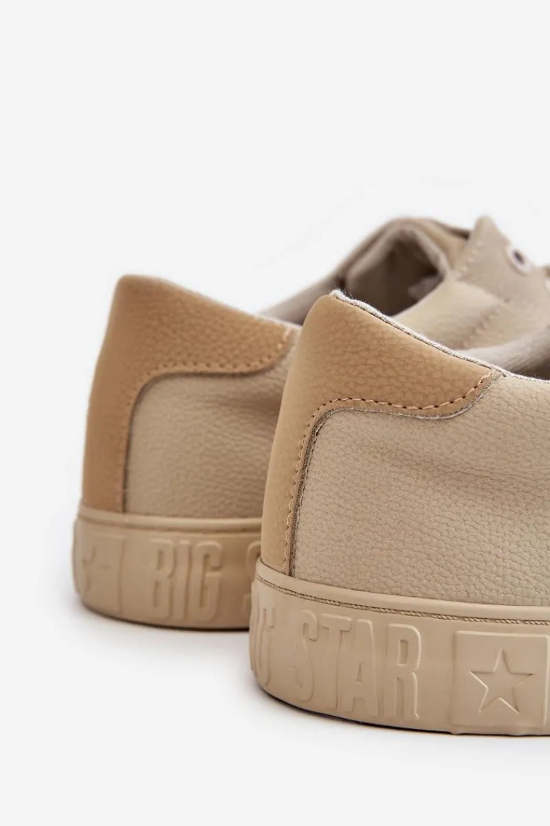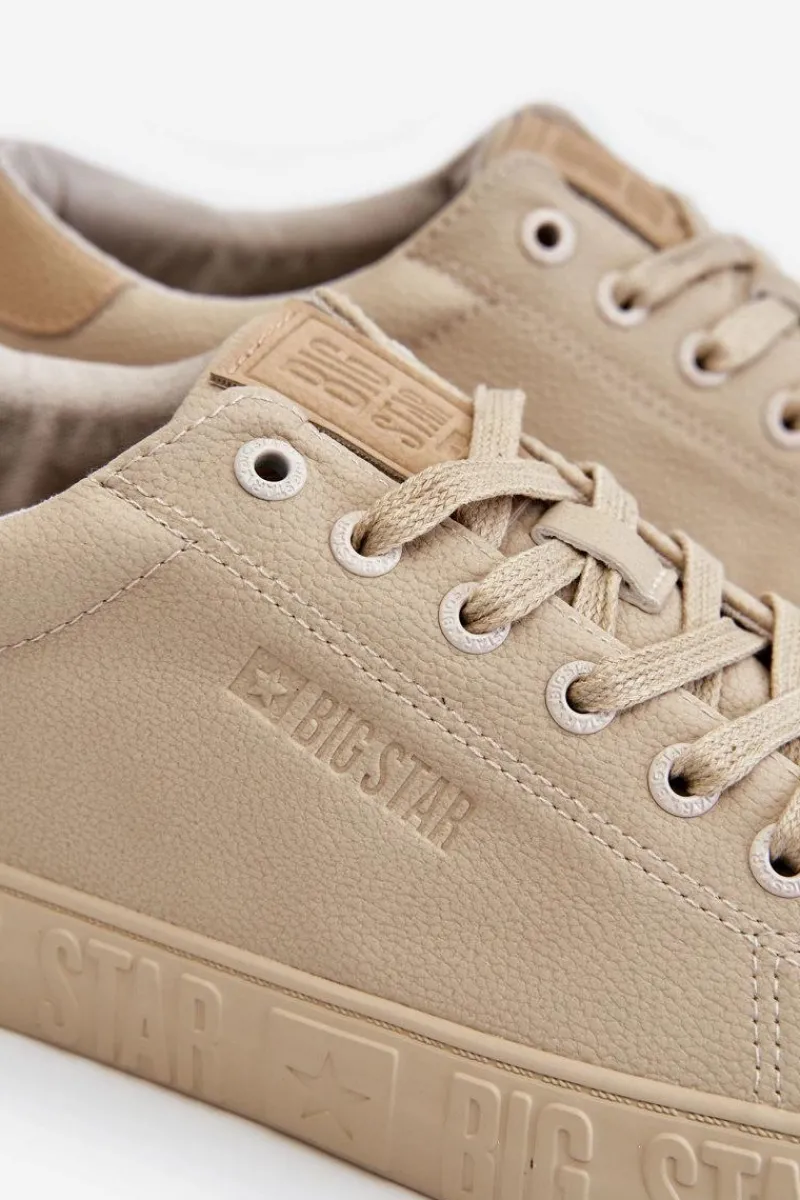 Tenisówki męskie od marki Big Star powinny znaleźć się w Twojej szafie! Cholewka została wykonana z materiałów imitujących eko skórę, które pochodzą z recyklingu. Z boku cholewki tłoczone logo marki Big Star. Zapiętek w tych butach jest usztywniany. Podeszwa wykonana z gumowego tworzywa jest antypoślizgowa. Model sznurowany sprawi, że buty będą idealnie dopasowane. Ten model butów świetnie sprawdzi się do szkoły, pracy czy na weekendowy wyjazd ze znajomymi. Przy wyborze rozmiaru prosimy sugerować się tabelą rozmiarów.