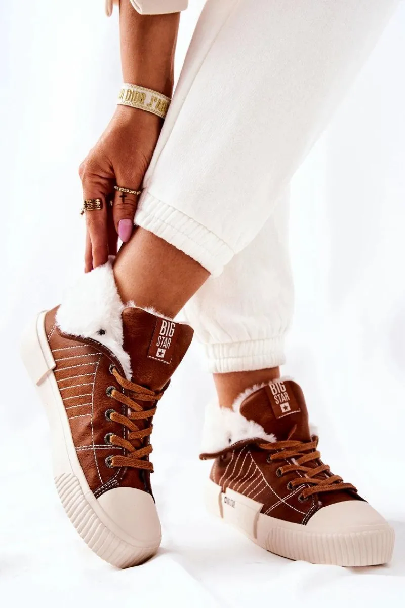 Fani trampek oszaleją! Lubisz nosić trampki o każdej porze roku? Jeśli tak to ten model z pewnością zagości w Twoim sercu! Klasyczne trampki z nieco wyższą cholewką, która delikatnie zakrywa nasze kostki. Cholewkę można również odwinąć, przez co buty będą jeszcze wyższe. Dodatkowo trampki wewnątrz posiadają ciepłe futerko. Koniecznie sprawdź całą naszą kolekcję butów BIG STAR. Przy wyborze rozmiaru prosimy sugerować się tabelą rozmiarów.