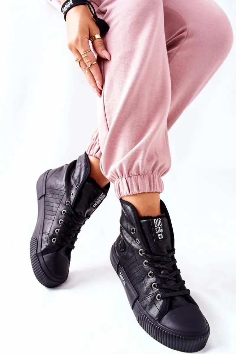 Fani trampek oszaleją! Lubisz nosić trampki o każdej porze roku? Jeśli tak to ten model z pewnością zagości w Twoim sercu! Klasyczne trampki z nieco wyższą cholewką, która delikatnie zakrywa nasze kostki. Cholewkę można również odwinąć, przez co buty będą jeszcze wyższe. Dodatkowo trampki wewnątrz posiadają ciepłe futerko. Koniecznie sprawdź całą naszą kolekcję butów BIG STAR. Przy wyborze rozmiaru prosimy sugerować się tabelą rozmiarów.