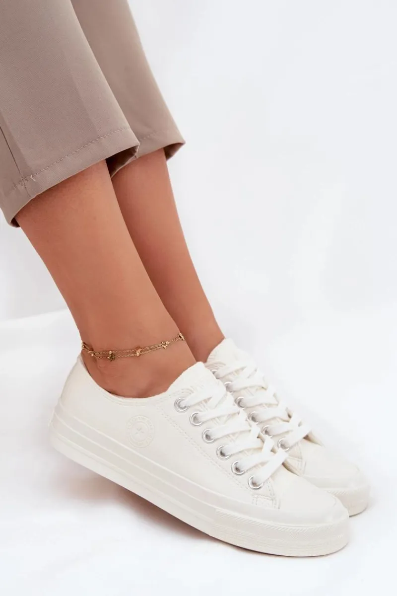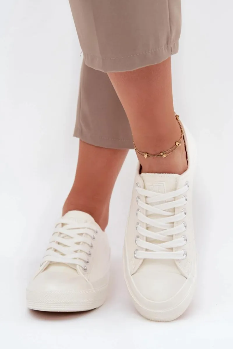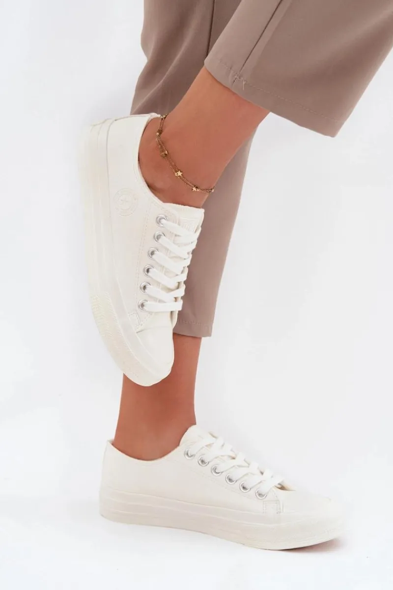 Damskie trampki od marki Big Star to idealna propozycja na chłodniejsze dni. Wykonane z eko skóry. Środek butów ocieplony jest miękkim, przyjemnym w dotyku kocem obuwniczym, co zapewnia komfort i ciepło. Te trampki to doskonały wybór, łączący styl z funkcjonalnością, idealne do codziennych, jesiennych stylizacji. Przy wyborze rozmiaru prosimy sugerować się tabelą rozmiarów.