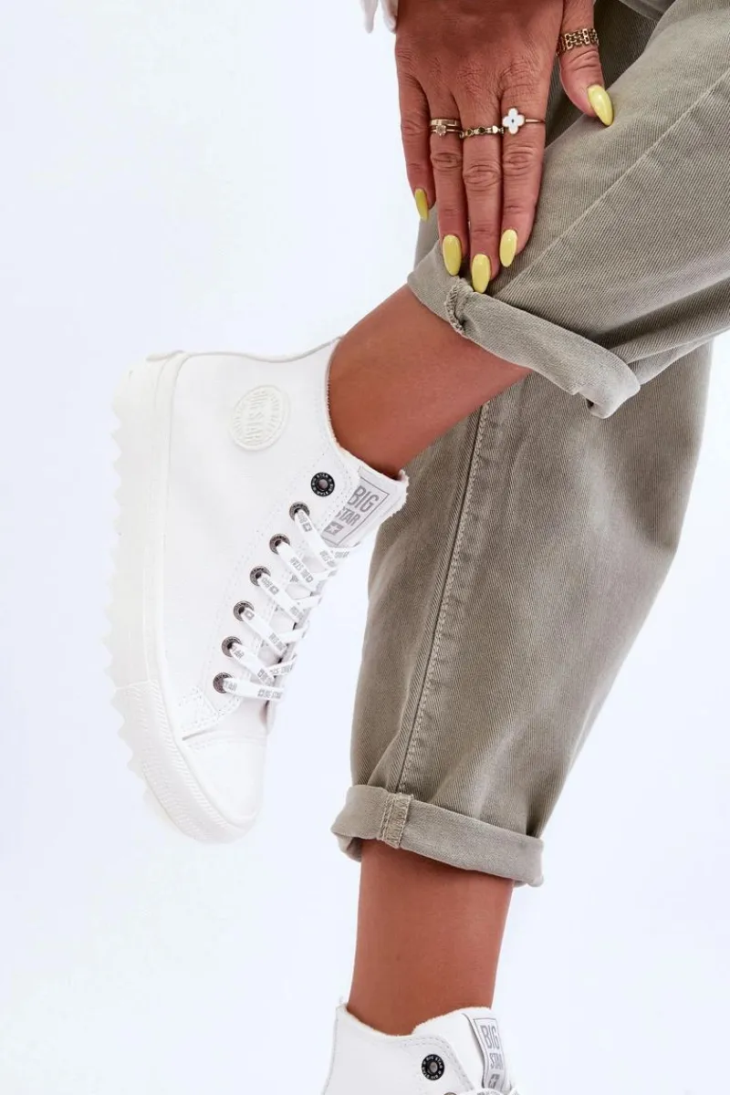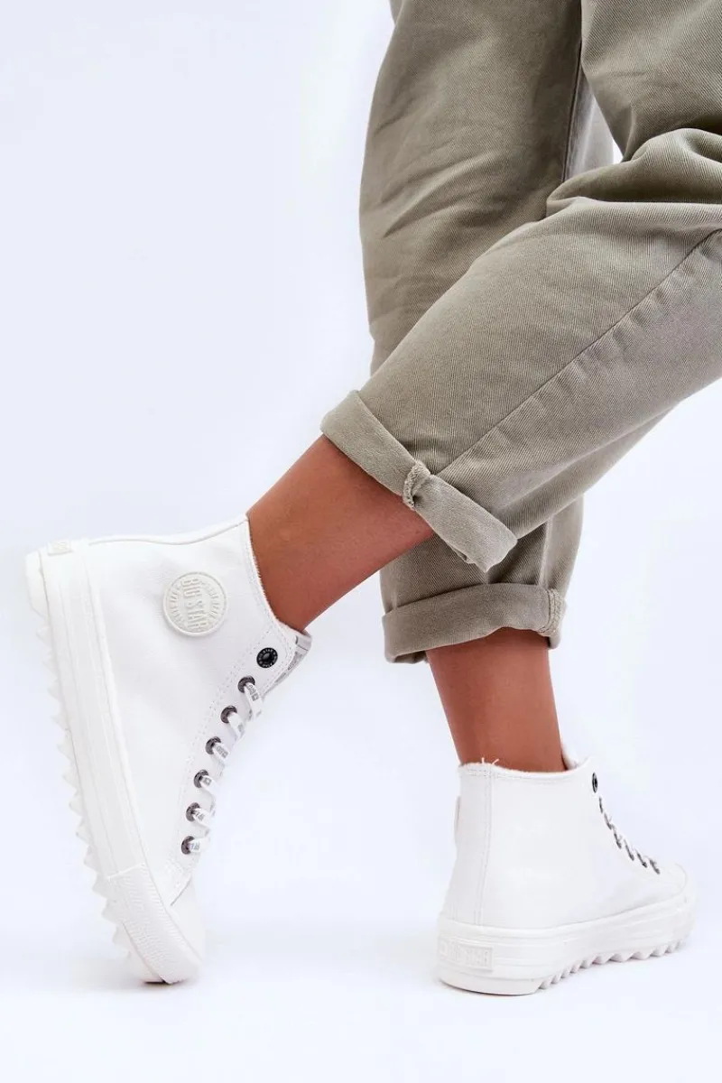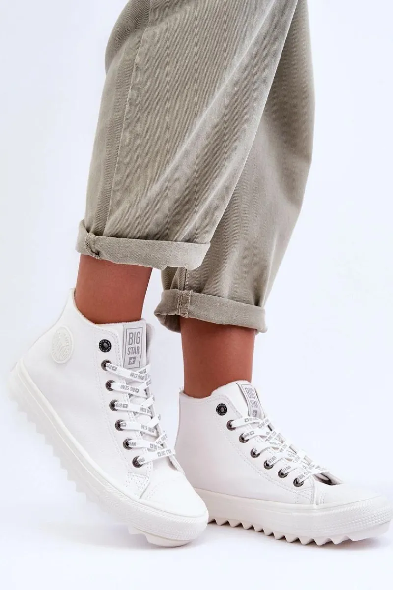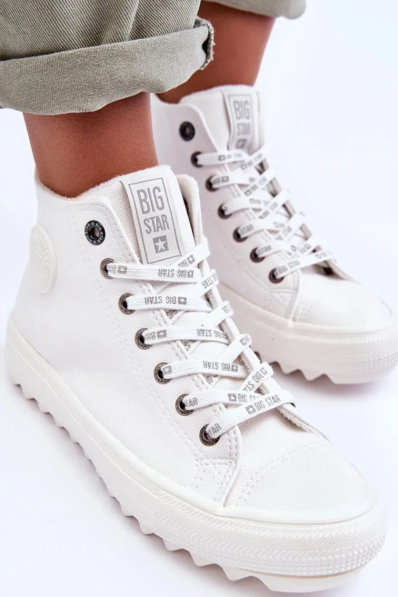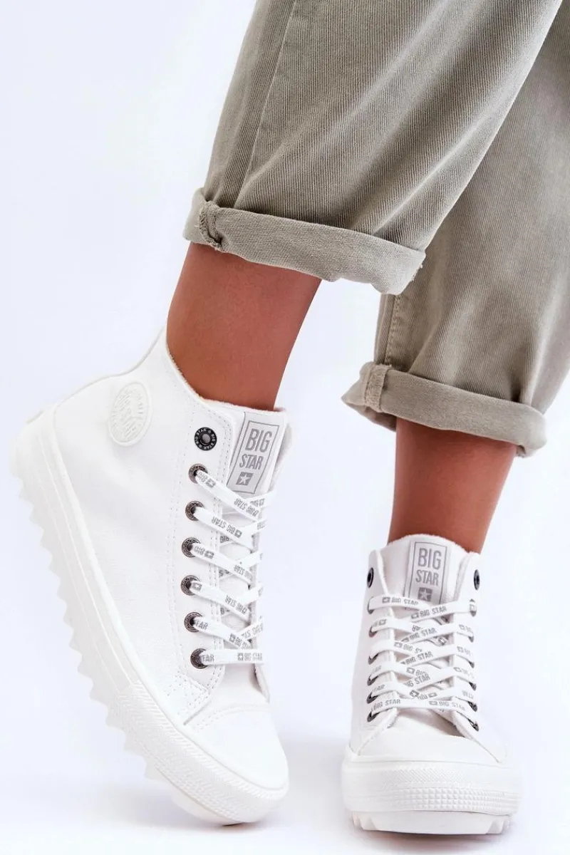 Trampki Ocieplane|Trampki Damskie Big Star>Big Star Shoes Trampki Damskie Big Star Wysokie Ocieplane Białe GG274108 Biały