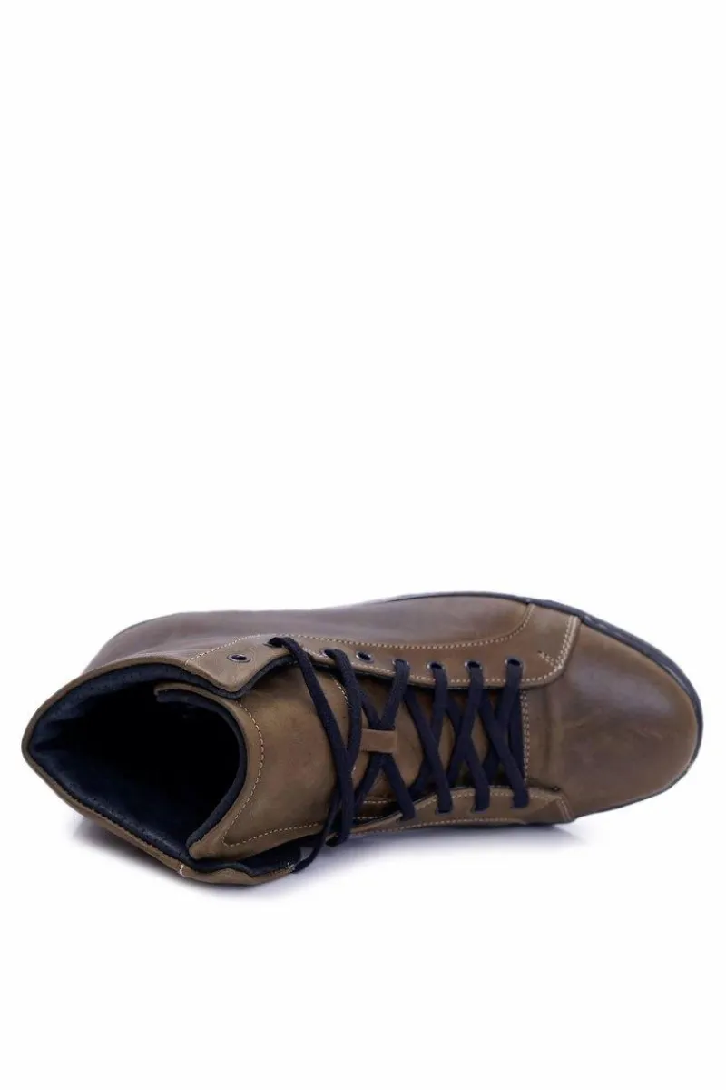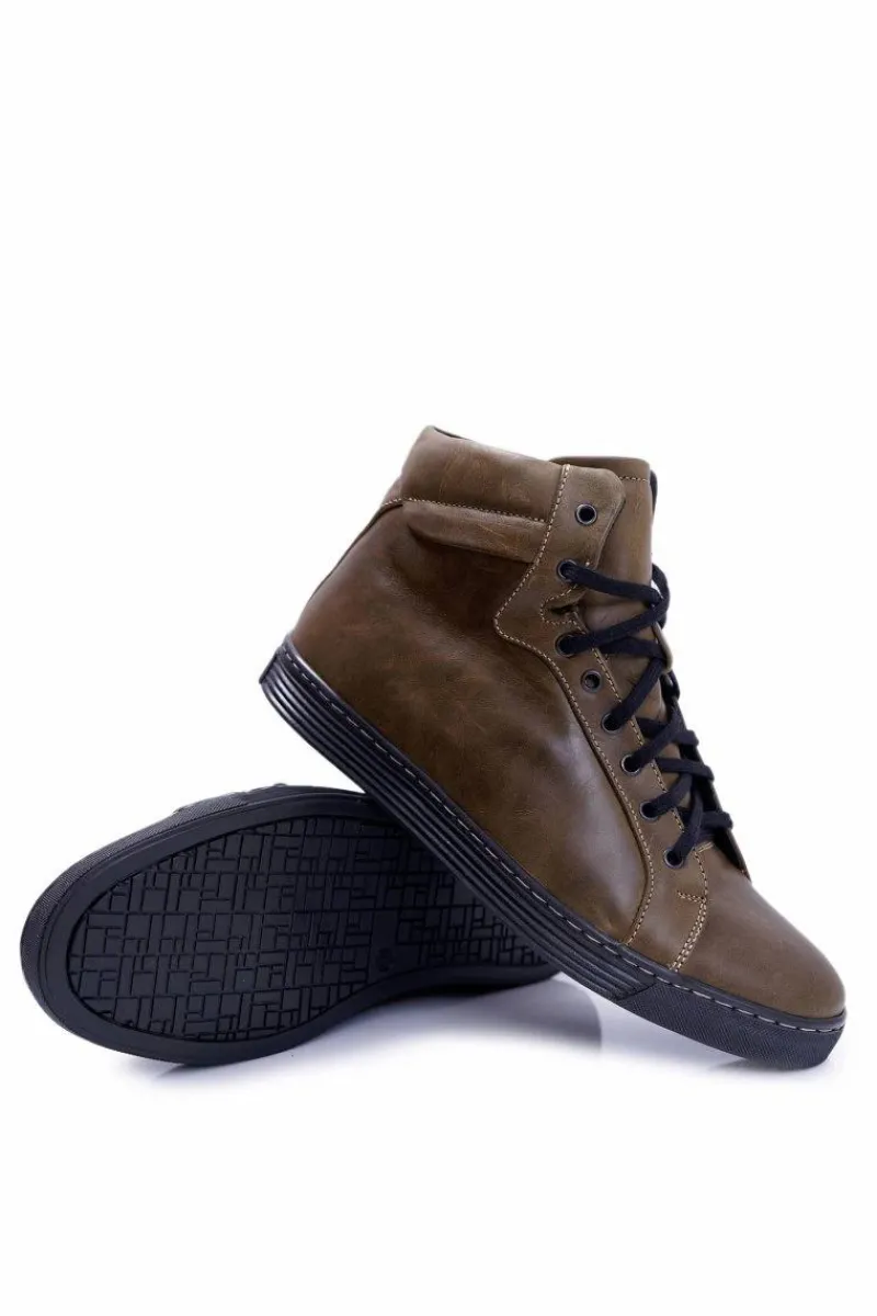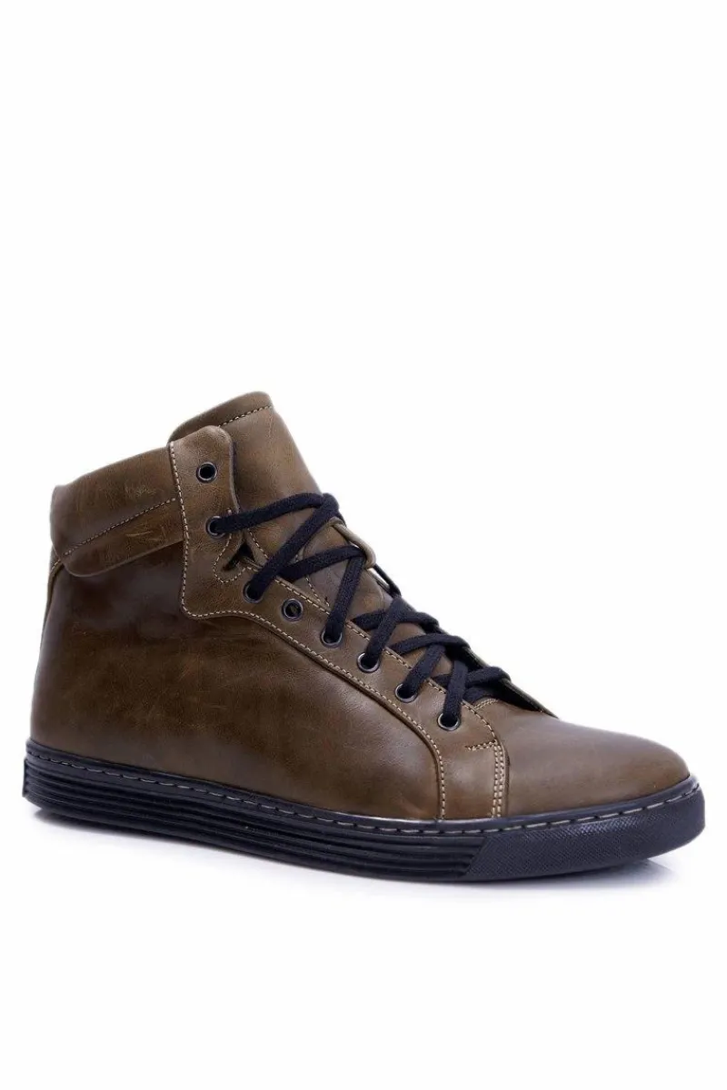 Trampki Wysokie|Trampki Męskie Wysokie>Boto Męskie Skórzane Tenisówki Bednarek Oliwkowe Edys