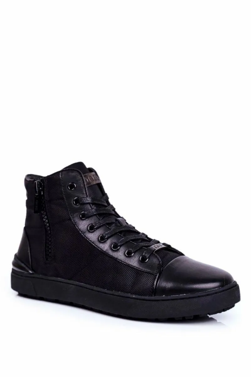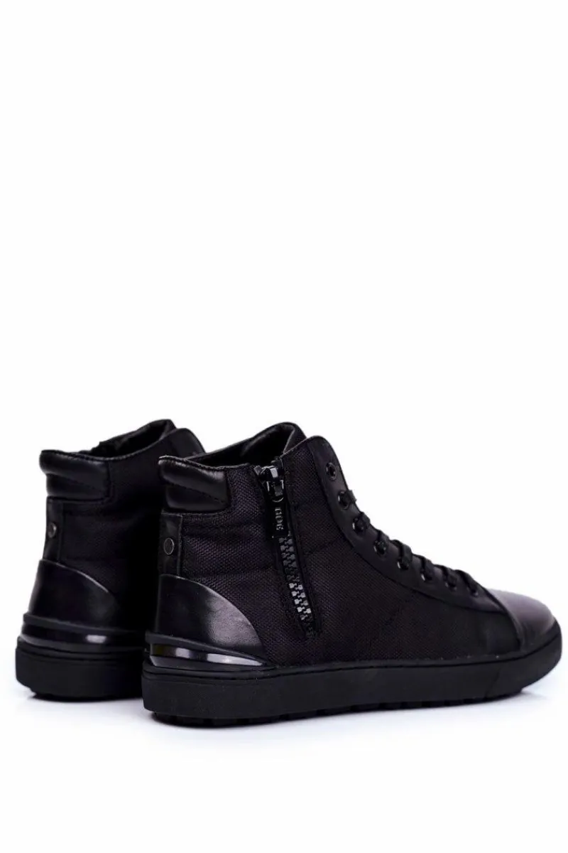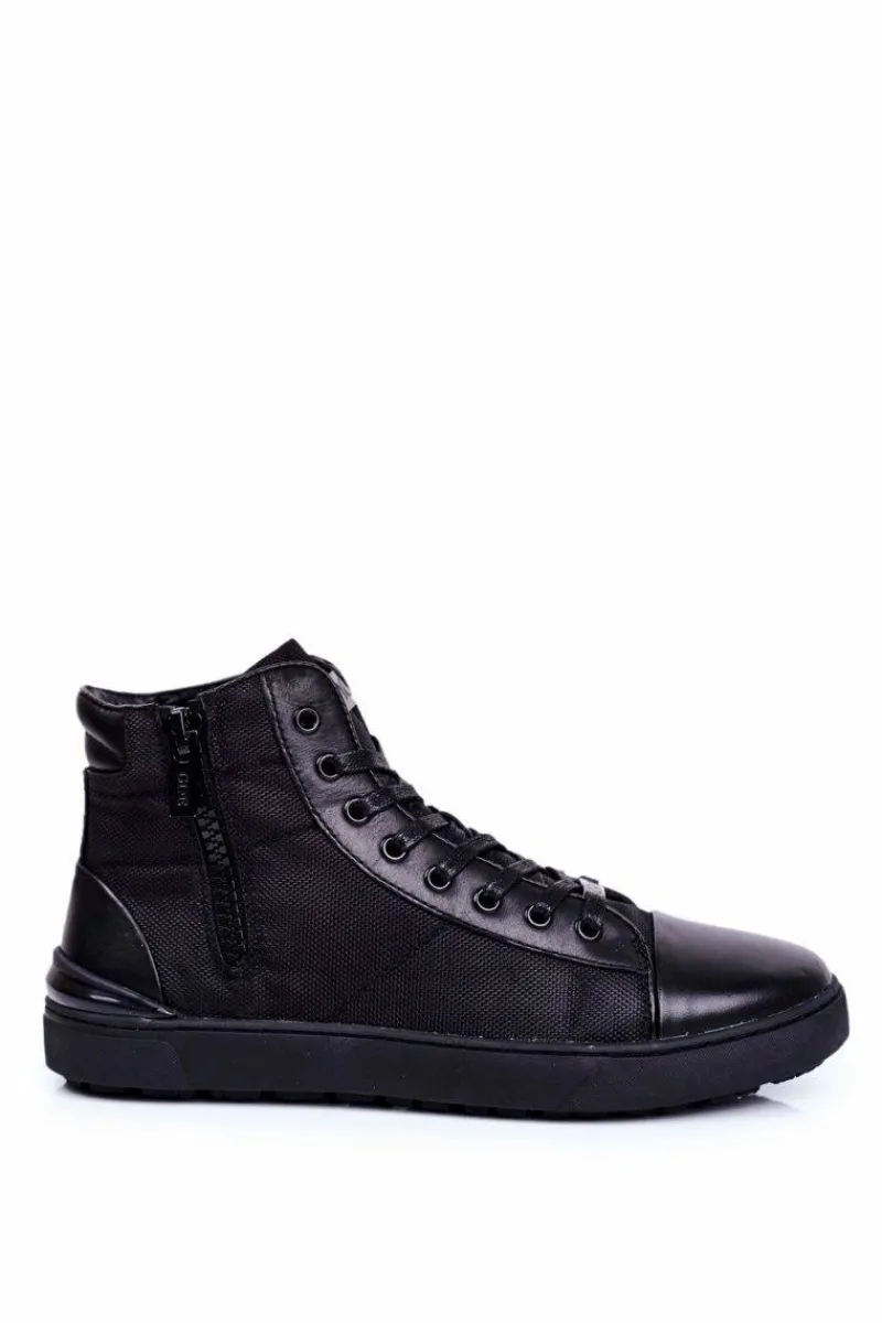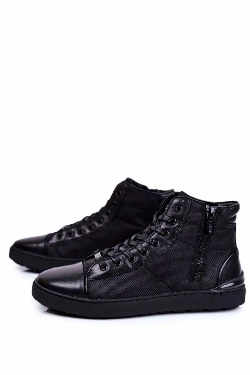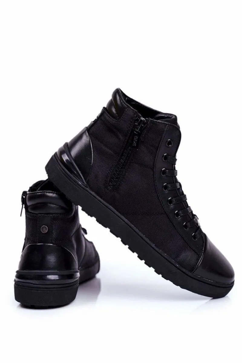 Trampki Wysokie|Trampki Męskie Wysokie>GOE Męskie Trampki Skórzane Czarne GG1N3019