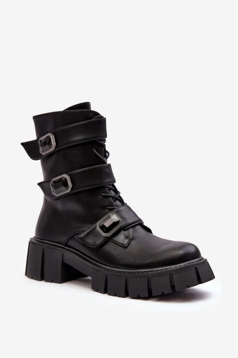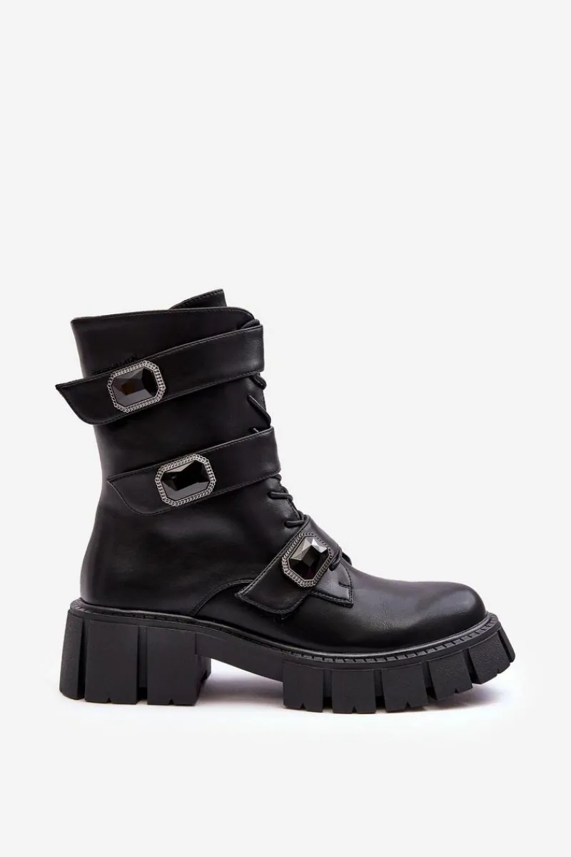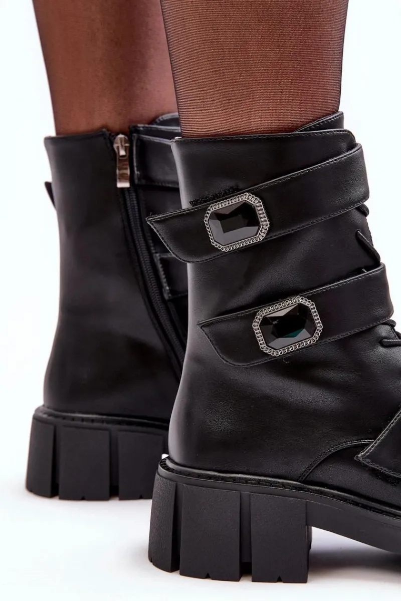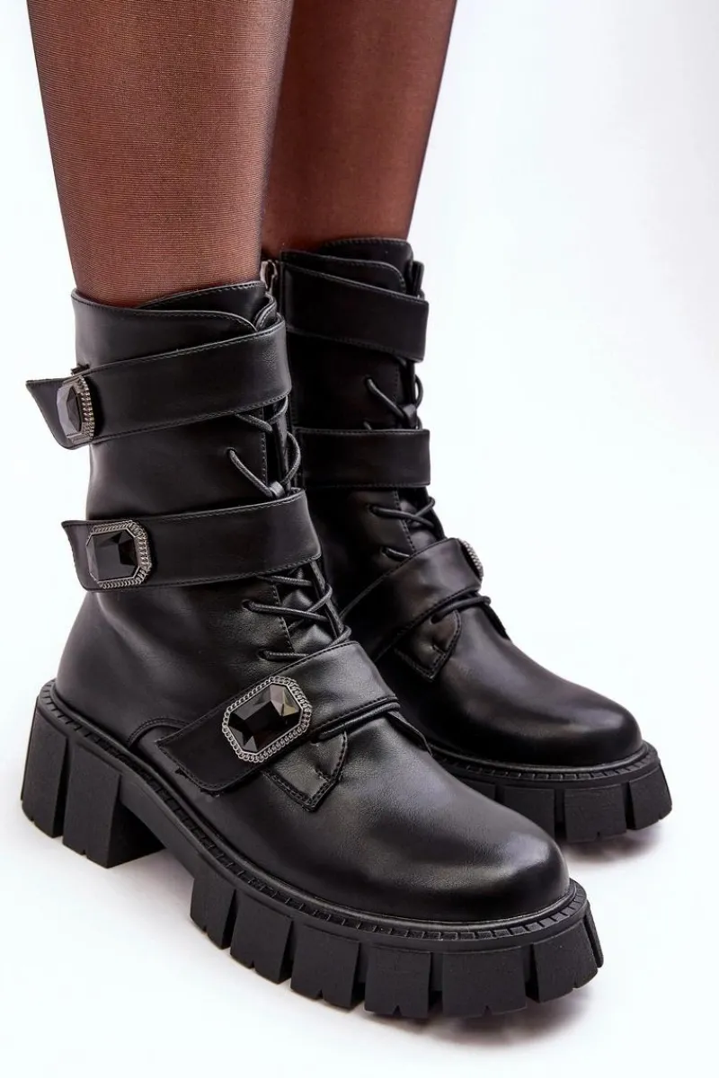 Damskie botki w stylu workerów zostały wykonane z wysokiej jakości eko skóry. W środku ocieplone kocem obuwniczym. Osadzone na płaskim obcasie i platformie. Z przodu sznurowanie oraz paski z ozdobami. Noski zaokrąglone. Usztywniony zapiętek. Ten model na pewno wykorzystasz w wielu stylizacjach! Przy wyborze rozmiaru prosimy sugerować się tabelą rozmiarów.
