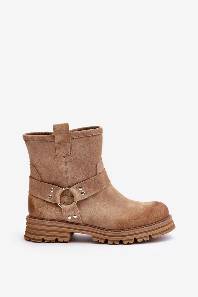 Botki wykonane z naturalnego zamszu to idealny wybór na każdą okazję. Osadzone na płaskim obcasie, zapewniają komfort i stabilność podczas chodzenia. Zaokrąglone noski dodają subtelnego charakteru. Model zapinany na zamek, co ułatwia zakładanie. Cholewka ozdobiona efektownym połączeniem pasków, które dodają stylowego akcentu. Te botki świetnie sprawdzą się w codziennych stylizacjach, łącząc elegancję z wygodą. Przy wyborze rozmiaru prosimy sugerować się tabelą rozmiarów.
