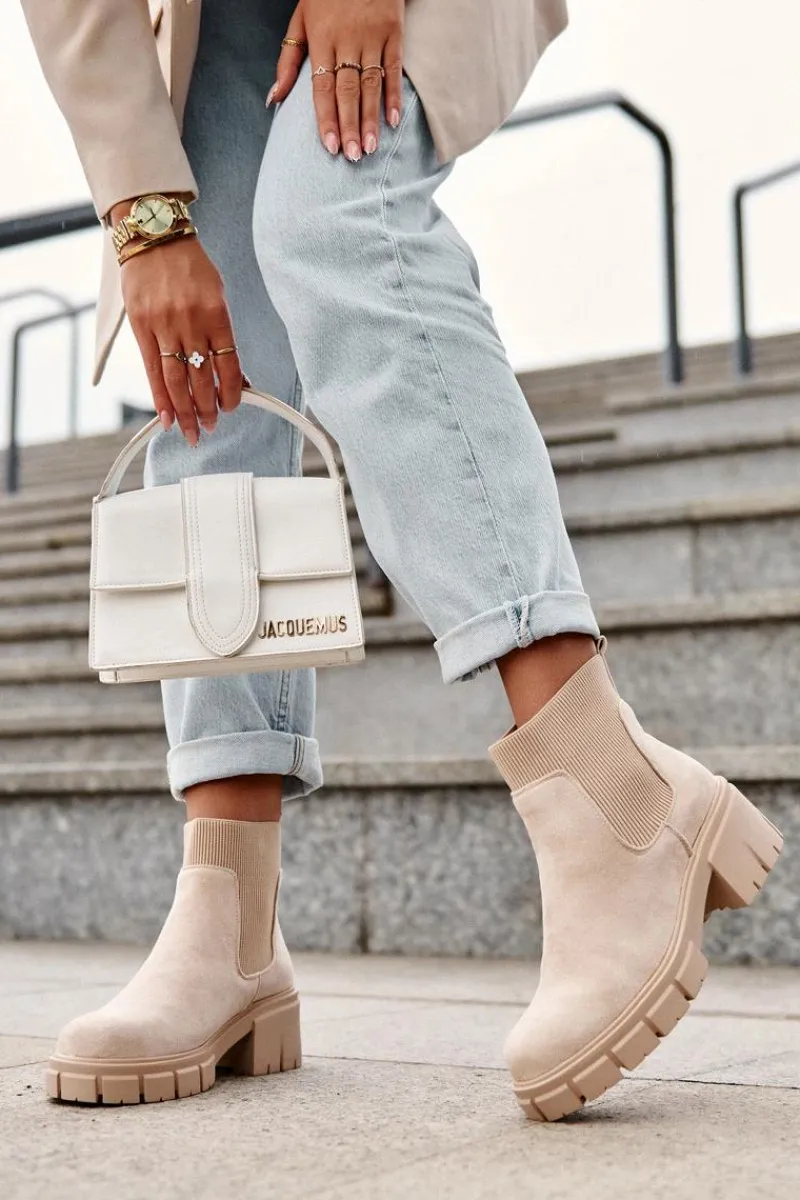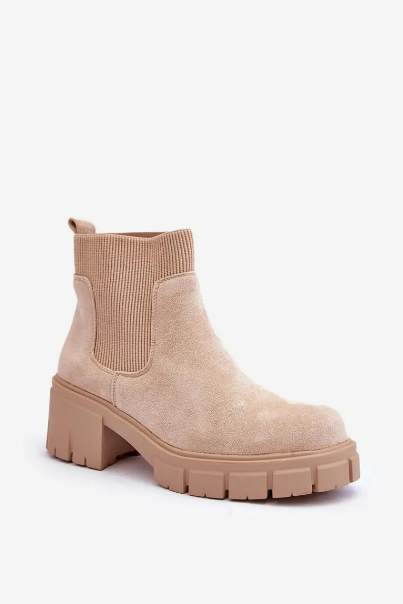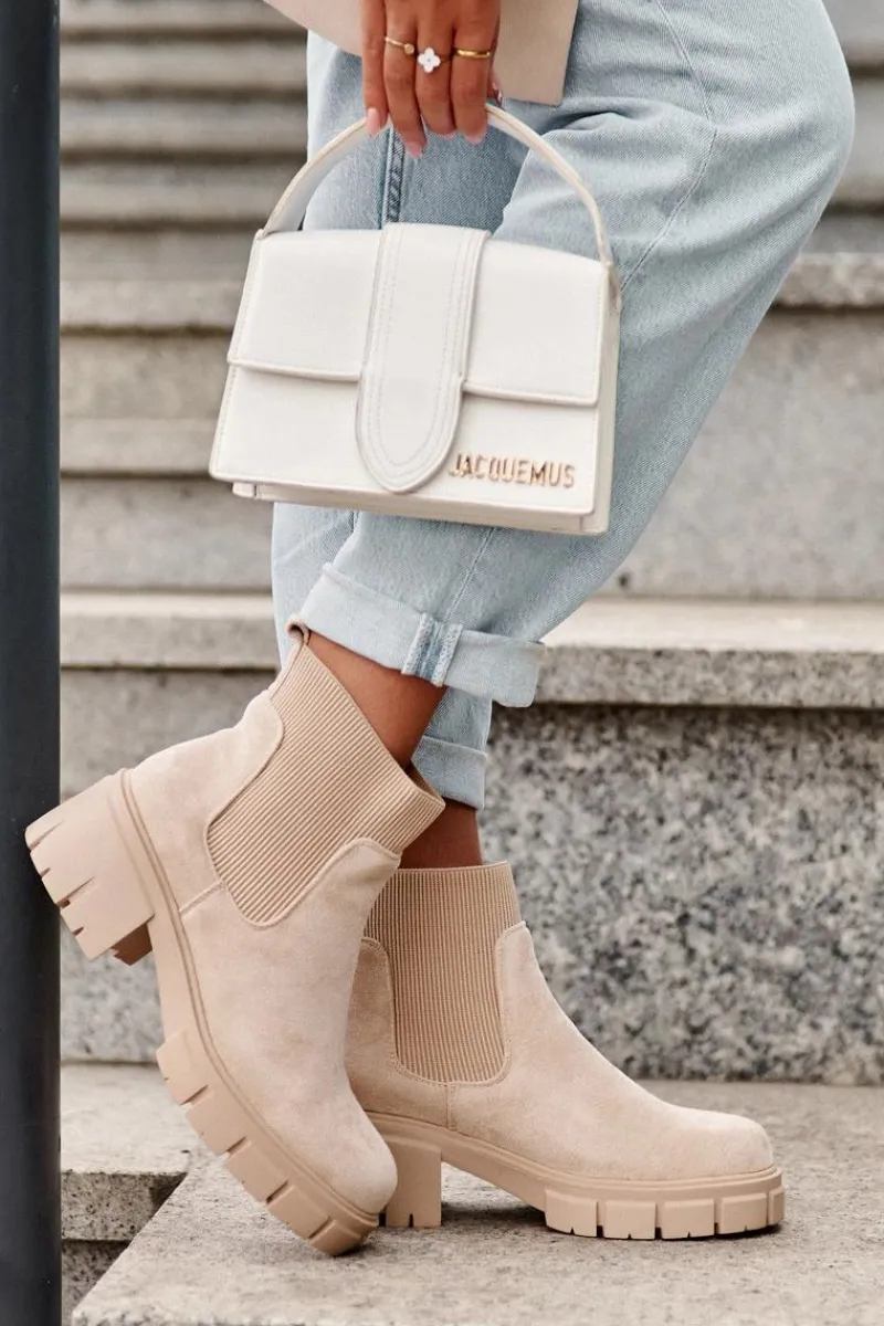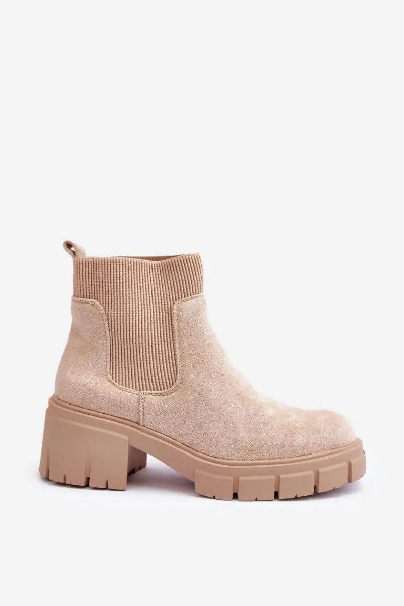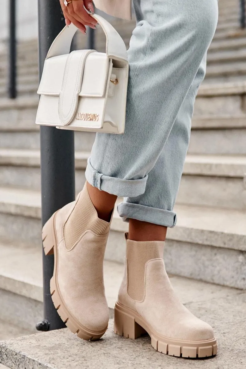 Damskie botki zostały wykonane z eko zamszu. Osadzone na masywnym obcasie oraz platformie. Model wsuwany, noski zaokrąglone. Dodatkowo zapiętek jest usztywniony. Nie czekaj aż znikną i kup już dziś! Przy wyborze rozmiaru prosimy sugerować się tabelą rozmiarów.