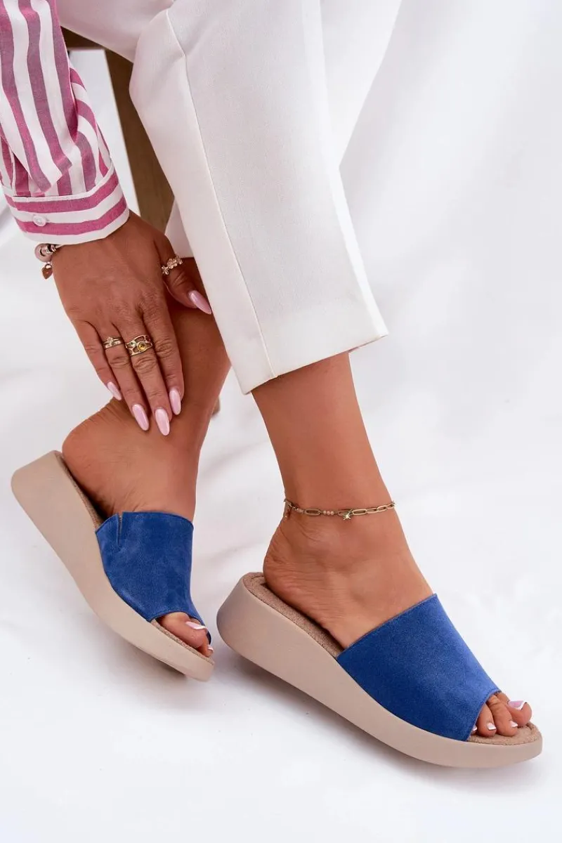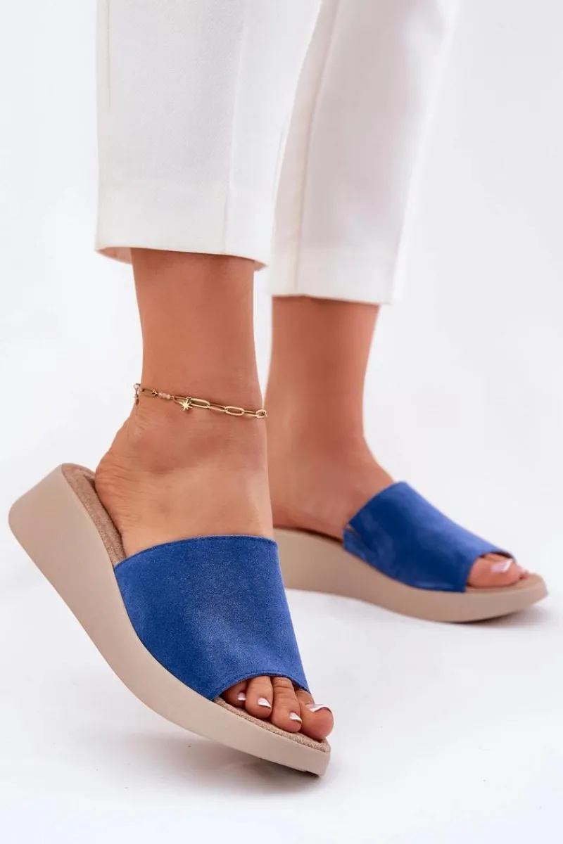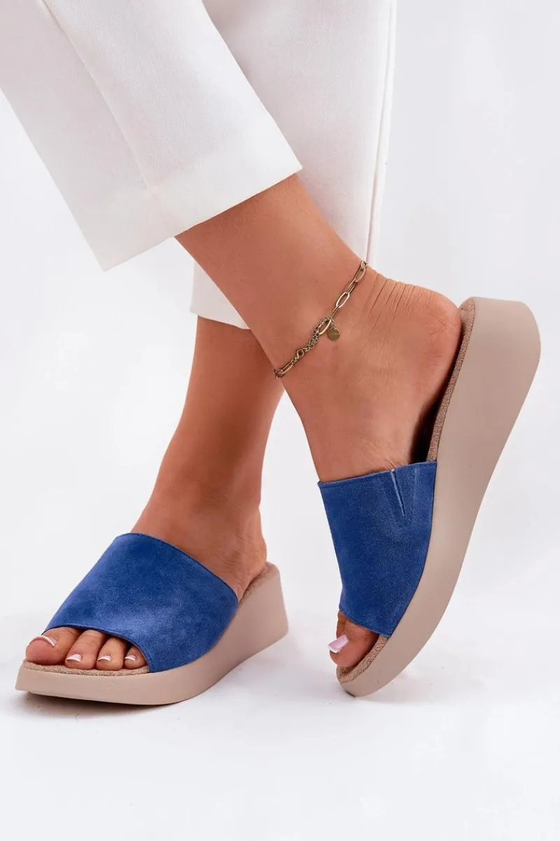 Damskie klapki wykonane z naturalnego zamszu to elegancka opcja na ciepłe dni. Osadzone na koturnie, zapewniają wygodę oraz stabilność przez cały dzień. Miękka wkładka dba o komfort stóp, czyniąc je idealnym wyborem do codziennych, letnich stylizacji. Te klapki łączą styl z funkcjonalnością, doskonale uzupełniając casualowe i bardziej eleganckie looki. Przy wyborze rozmiaru prosimy sugerować się tabelą rozmiarów.