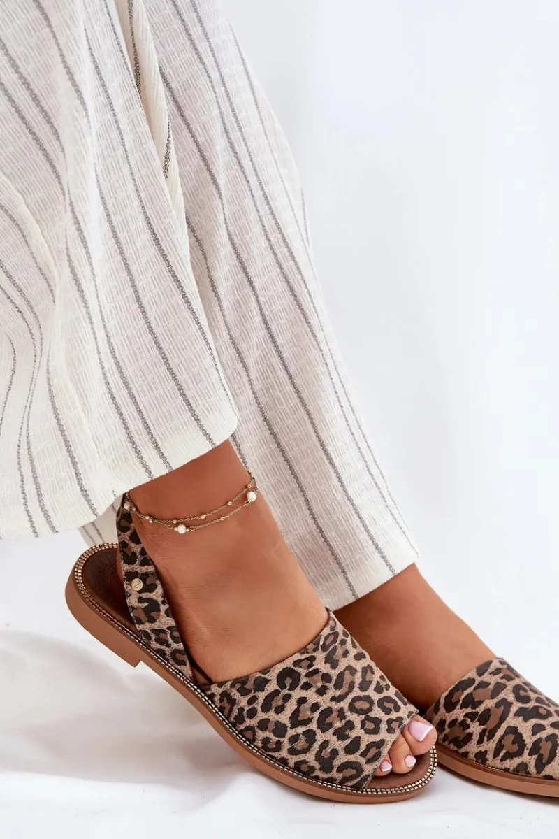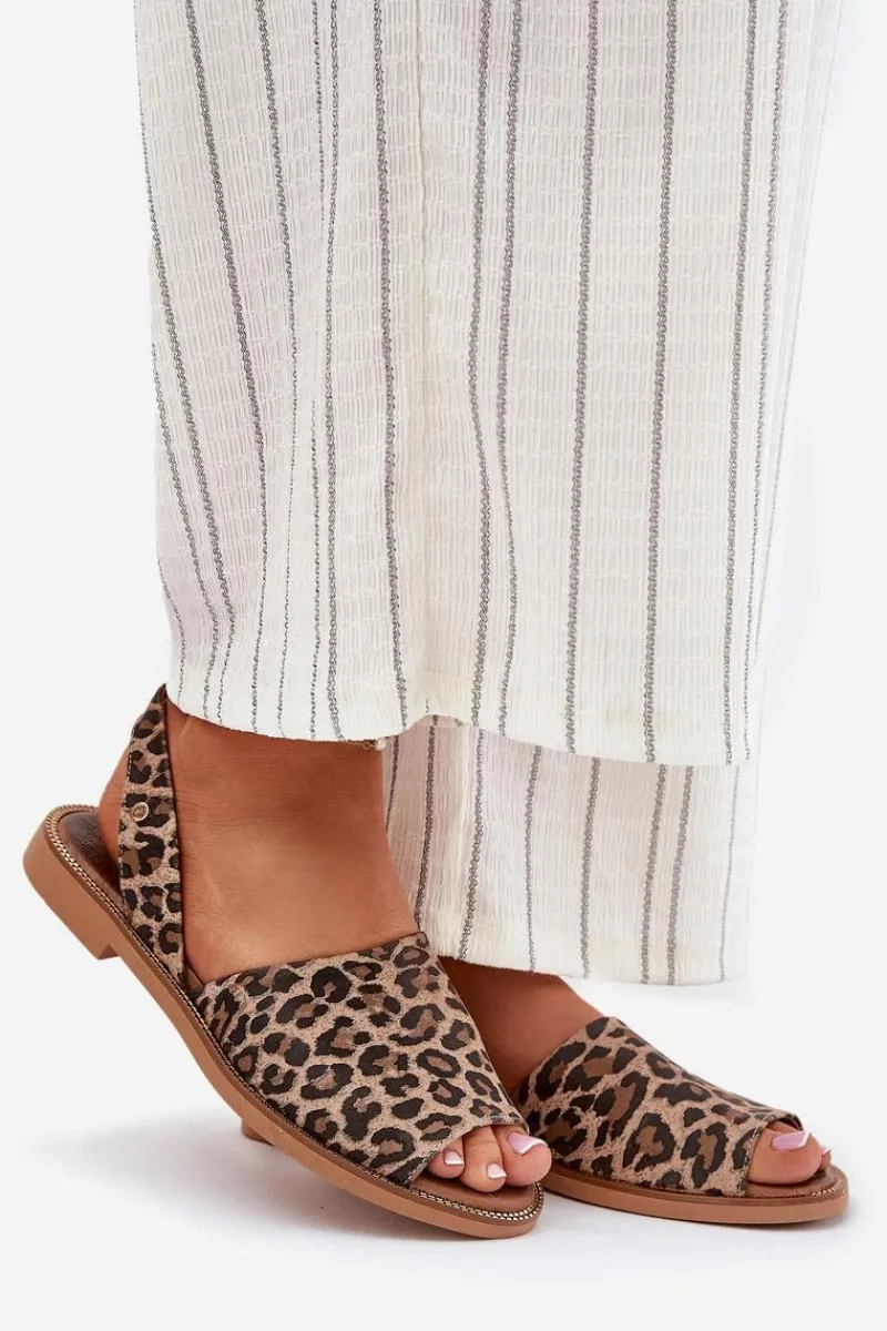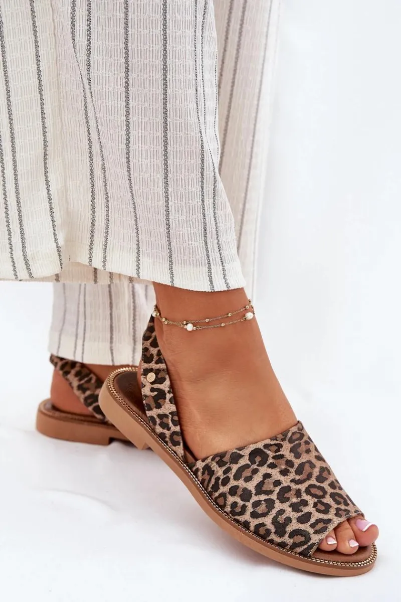 Wsuwane sandałki damskie zostały wykonane z wysokiej jakości naturalnej skóry. Osadzone na płaskim obcasie ze zdobieniami przy podeszwie. Sandałki posiadają odkrytą piętę i palce. Miękka, skórzana wkładka zapewni wygodne użytkowanie. Sandałki są wsuwane, a ich tylna część cholewki jest delikatnie usztywniona. Przy wyborze rozmiaru prosimy kierować się tabelą rozmiarów.